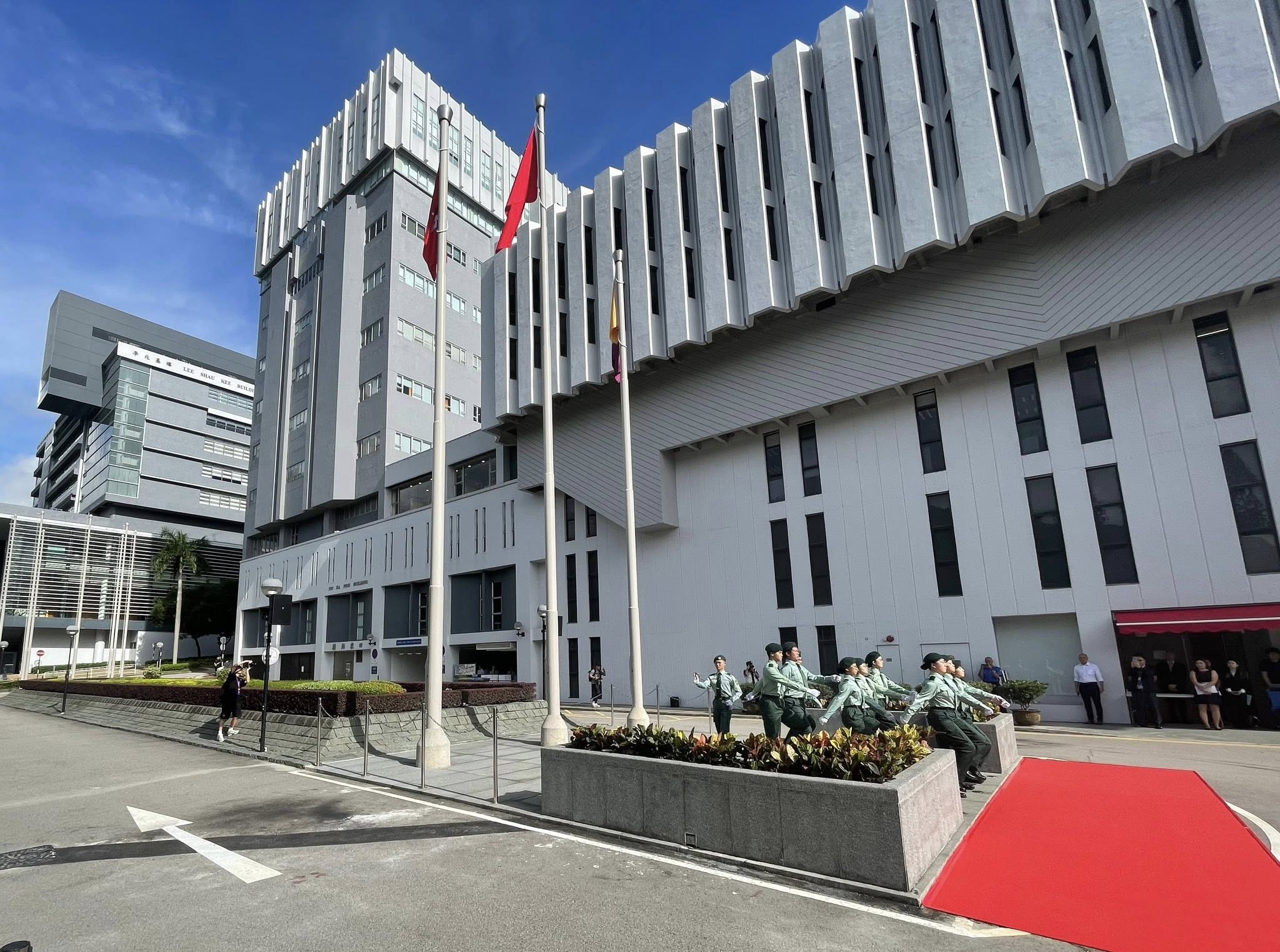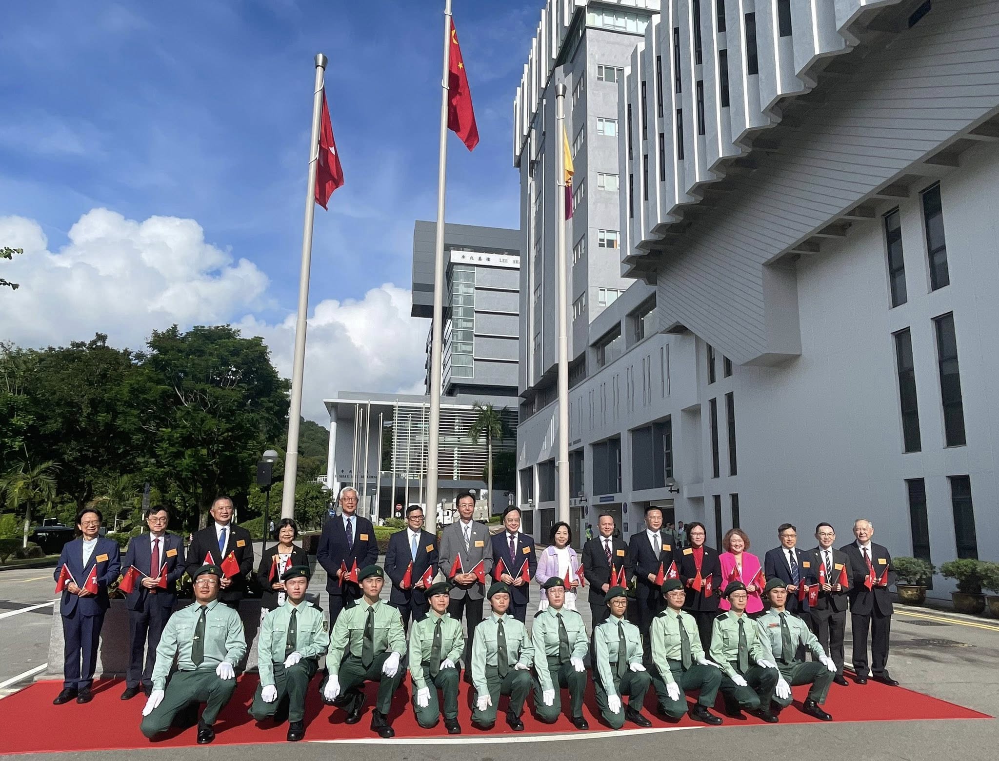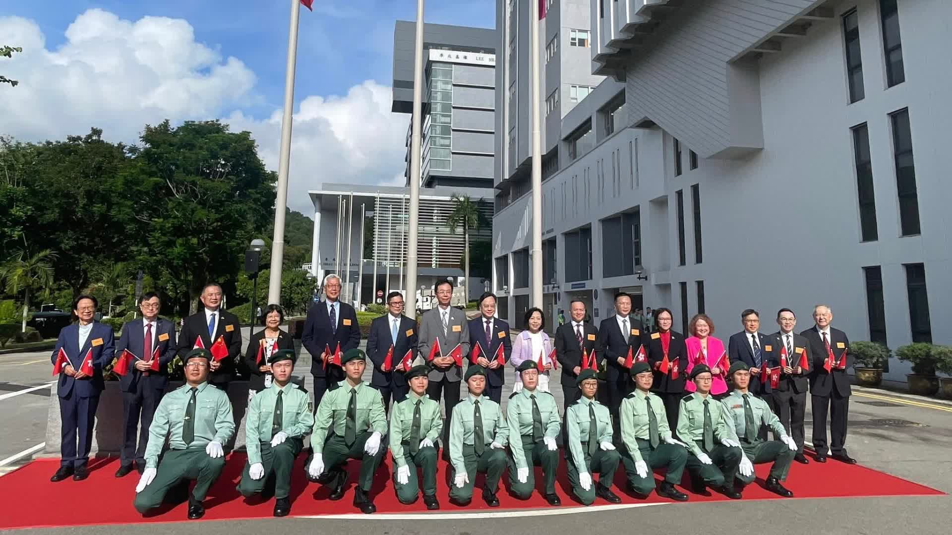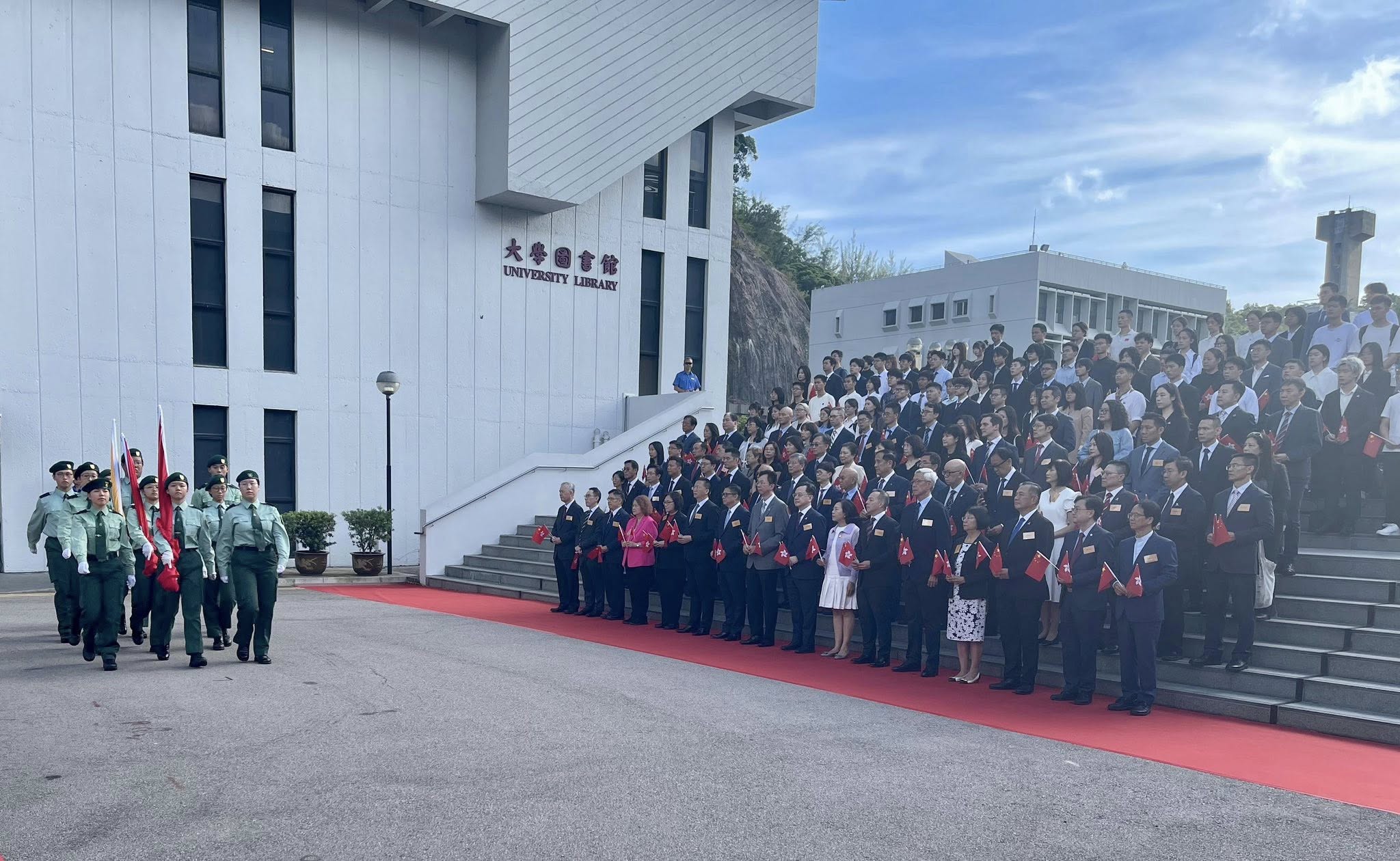 隨著國旗、區旗和中大校旗在國歌奏唱中升起,迎風飄展,亦標誌新學年正式展開!局長祝願同學們有愉快豐盛的大學生活,同時鼓勵大家訂立遠大目標,努力學習,好好裝備自己,將來為香港社會及國家進步貢獻青春力量。