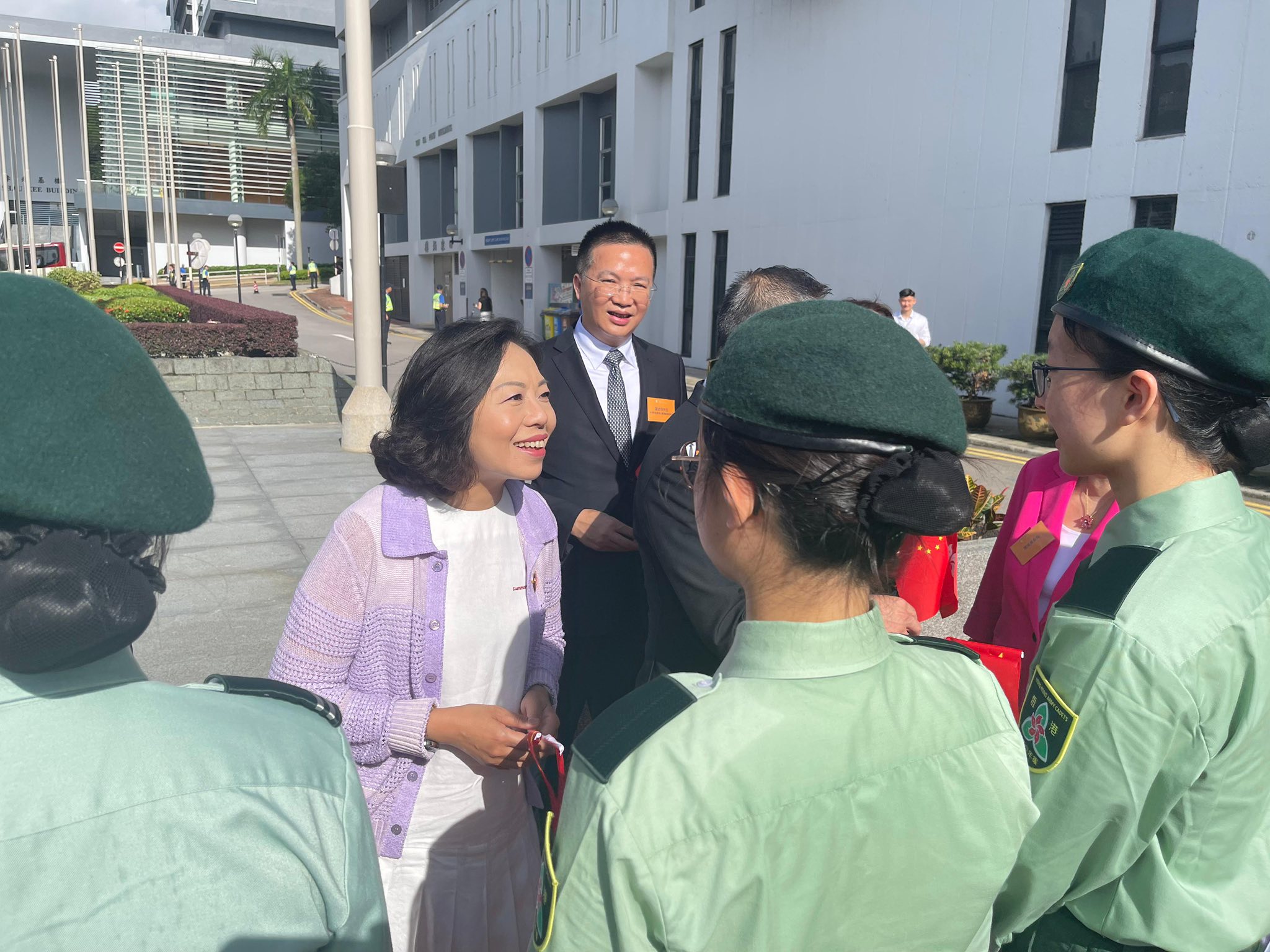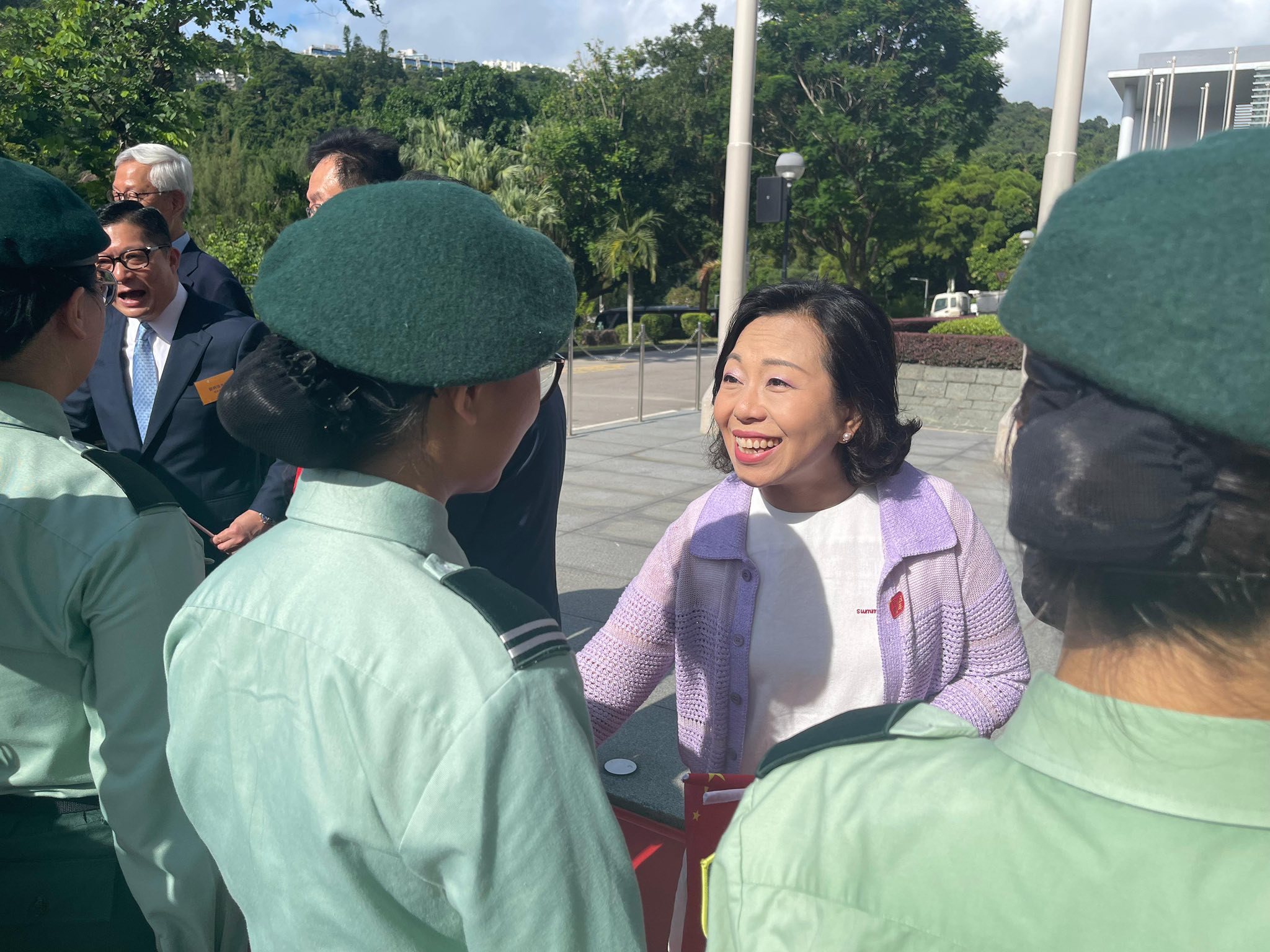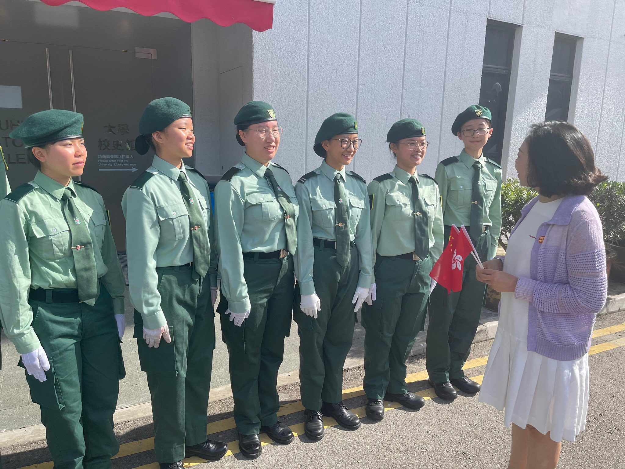 民青局局長麥美娟今早出席香港中文大學開學日升旗禮,與中大師生一起迎接新學年!升旗儀式由中大學生國旗護衛隊負責,隊員都接受過由民青局資助的青年制服團體「香港青少年軍總會」的升旗同步操訓練。升旗儀式除了提升青年人的國民身份認同,亦加強大家對國家的歸屬感和民族自豪感,厚植愛國情懷。