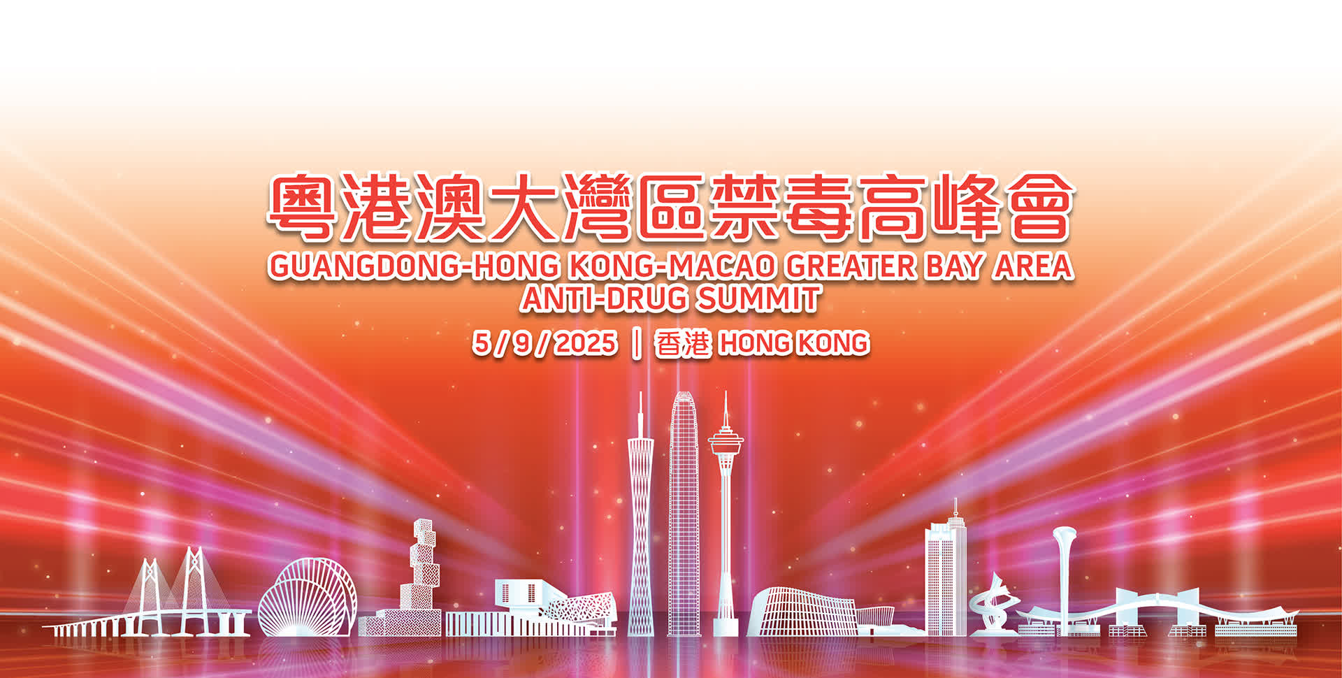 「粵港澳大灣區禁毒高峰會」於2025年9月5日在香港警察總部舉行,預期將有超過270位嘉賓出席,包括政務司司長陳國基先生、國家禁毒委員會常務副秘書長魏曉軍先生、保安局局長鄧炳強先生、香港特區政府禁毒常務委員會主席李國棟先生,廣東省禁毒委員會副主任梁瑞國先生、澳門保安司司長黃少澤先生、澳門社會工作局韓衛先生,以及新加坡中央肅毒局局長陳世輝先生等。