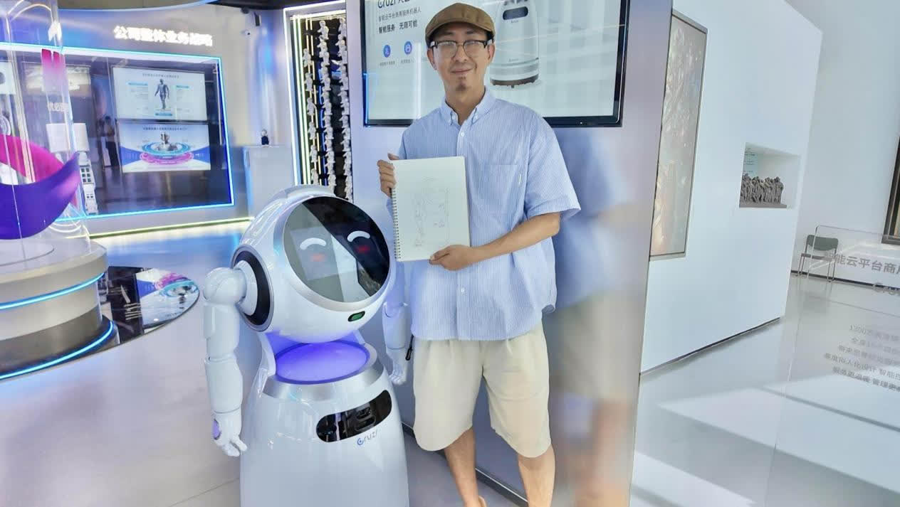 自由插畫師陳東擅長人物速寫,這是他第一次面對機器人作畫。他笑着說:「小時候看過變形金剛的電影,在這次採風中,它們就真實地出現在眼前,感覺更真實了。」