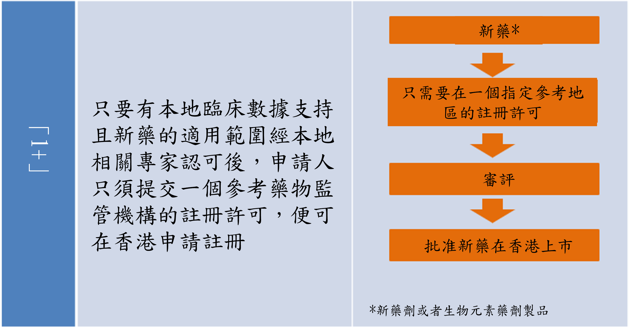2023年11月1日起正式實施的「1+」 新藥註冊機制是一項重要的創新措施,大大優化了香港的藥物註冊審批流程。「1+」機制是 「第二層審批」 的優化版,允許新藥在獲得一個指明參考地區(包括中國內地)藥物監管機構發出的註冊許可後,加上本地臨床數據及專家報告,即可在香港提交註冊申請,無需等待第二個參考地區的註冊許可,從而大大縮短了新藥在香港的註冊時間。這一機制令新藥,尤其那些在臨床上有迫切需求的藥品,能夠更快進入香港市場,滿足病人急切的醫療需求。「1+」機制大大加快了審批速度,是香港邁向「第一層審批」的重要里程碑,讓香港得以逐步積累寶貴經驗,從而奠定建立自主審批能力的基礎。