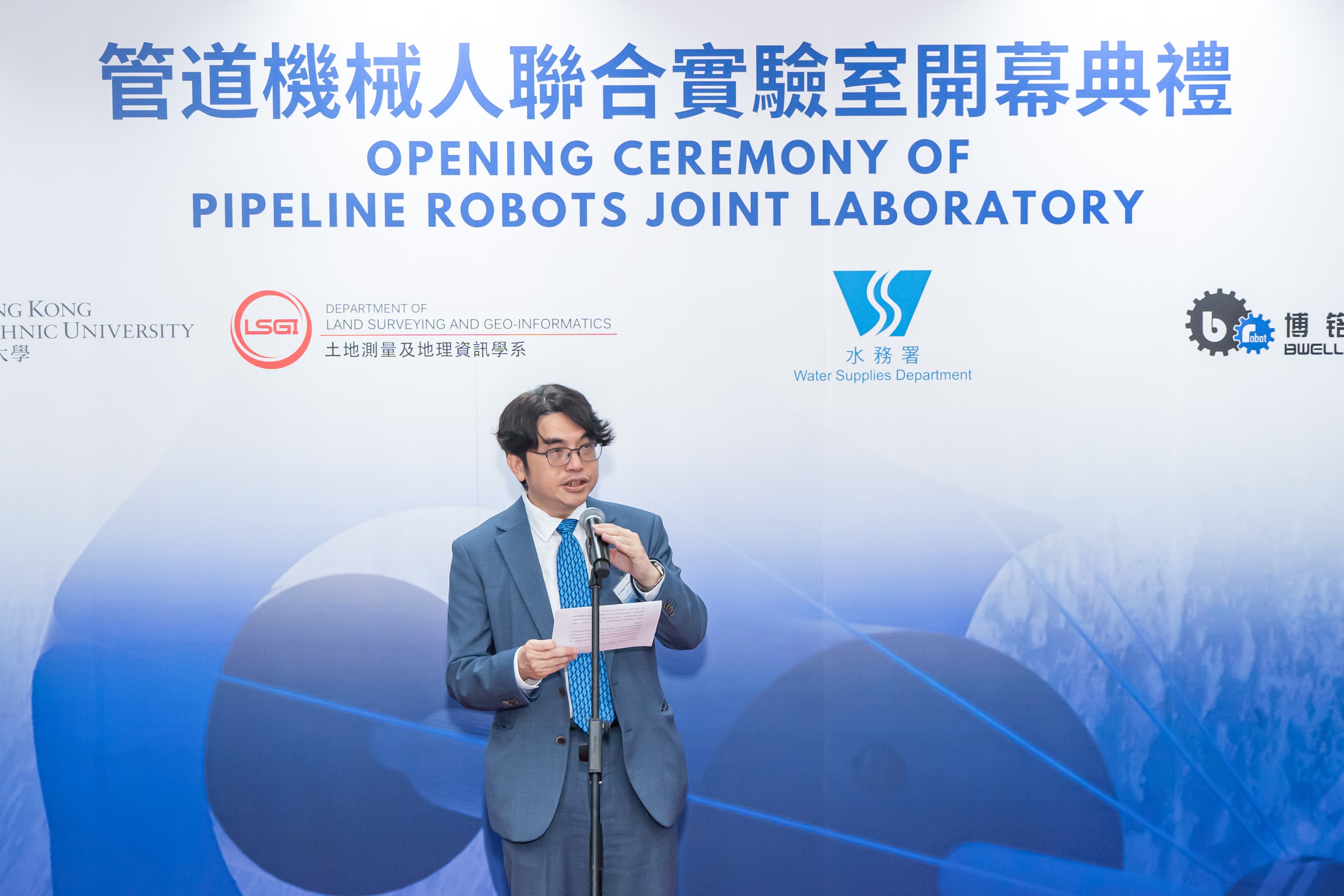 水務署署長黃恩諾在典禮致辭時表示,水務署一直致力與不同機構合作,研發和應用先進科技以推動香港智慧水務發展,並積極探索創新的方法,以提升供水管道檢測的技術和效率。水務署期望透過管道機械人聯合實驗室加速開發能應用在不同管道情況的智能機械人,進行高精準度的檢查,藉此減低水管爆裂和滲漏的風險,甚至有望監測水質狀況。