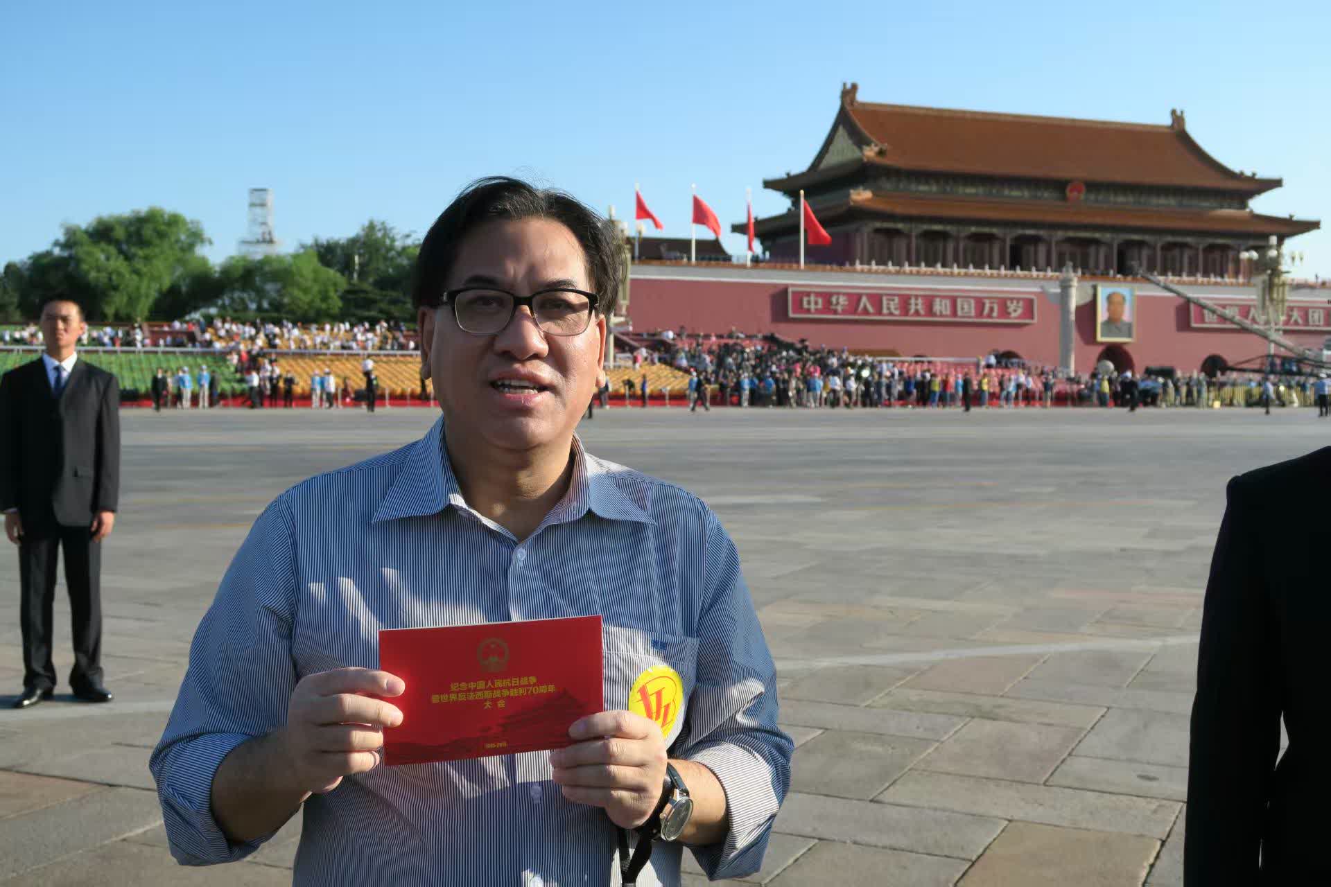 港區全國人大代表林至頴1日已經抵達北京,期待9月3日在天安門觀看盛大的閱兵式。他告訴記者,這是自己首次受邀觀禮閱兵,內心一直非常激動,更覺得這次觀禮極具意義。「這次觀禮不只是緬懷過去、重溫歷史,更重要的是鼓勵我們珍愛和平,為未來奮鬥汲取精神力量,獲得精神支持。」
