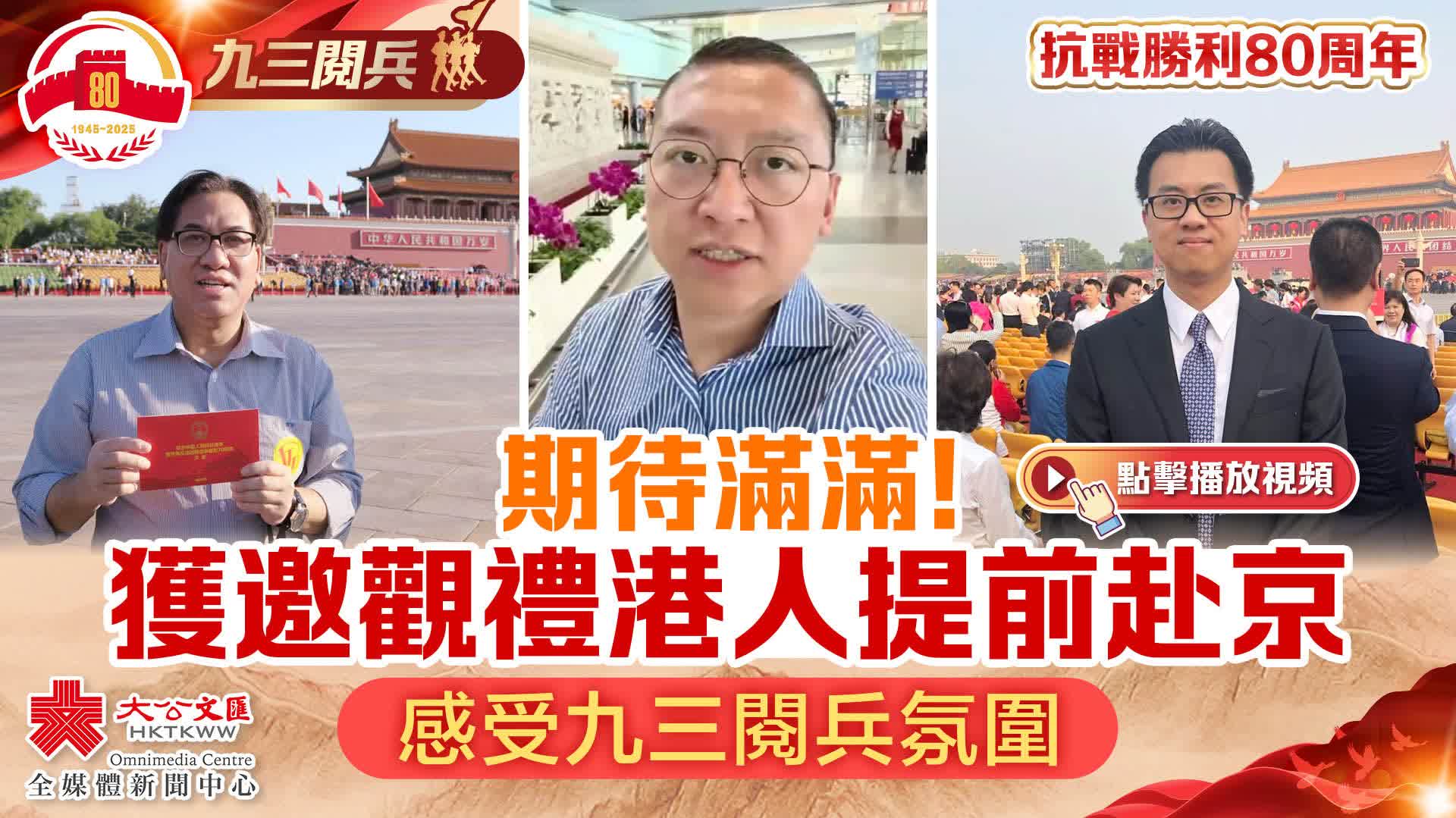 (大公文匯網 記者 馬靜 北京報道)中國人民抗日戰爭暨世界反法西斯戰爭勝利80周年紀念活動即將舉行,行政長官李家超將率團赴京出席紀念活動。獲邀觀禮港人對九三閱兵期待滿滿,希望能親眼見證祖國強大軍力和國防成就。更有港人迫不及待提前赴京感受閱兵氛圍,他們希望通過觀禮能獲得更多精神力量,不只是做一名「觀禮者」,更要做熱愛祖國,積極投身國家發展,為國家各項事業貢獻香港力量的「參與者」。