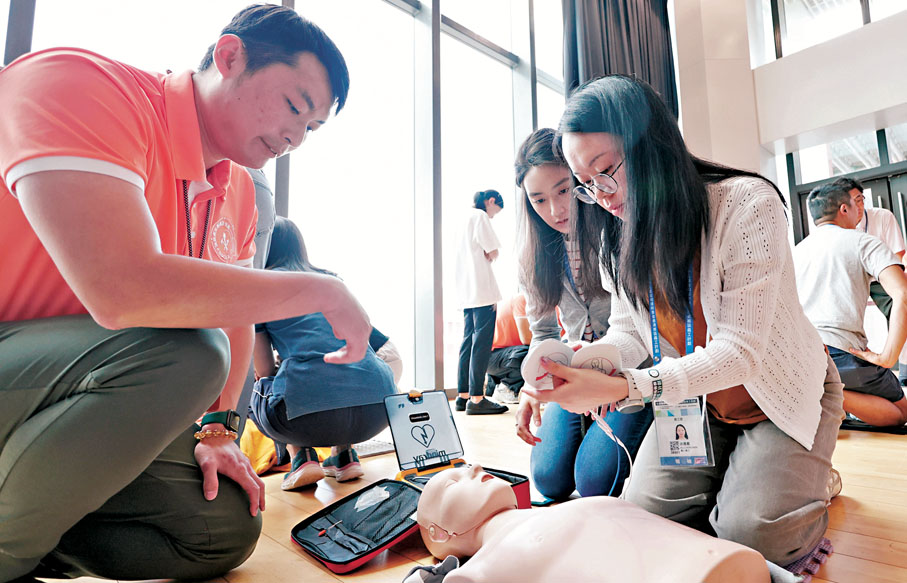 此外,消防處亦會教授義工領袖善用「保安一站通」等應用程式,尋找AED或求援;這些應用程式除可於全運會賽事使用外,亦可應用於日常生活中。
