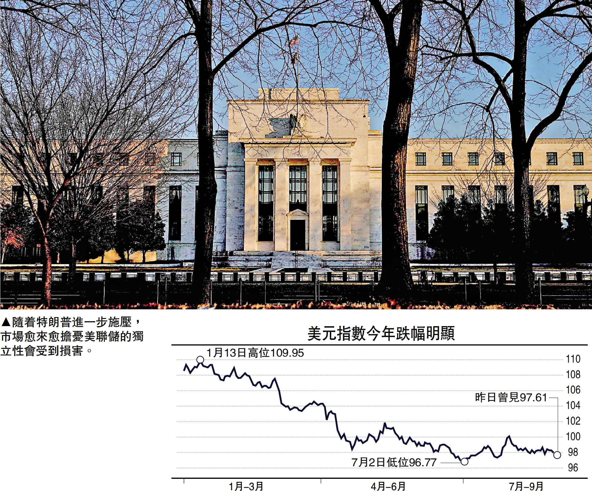 美聯儲2022年3月以來的激進緊縮,在降低通脹的同時保持了就業穩定,到去年9月重啟降息,美國經濟「軟着陸」幾乎唾手可得。然而,特朗普重返白宮後有恃無恐地干預美聯儲操作,成為今年上半年美元指數暴跌的重要推手。現在,美聯儲被置於三重險境,美元信用下降和美元匯率頹勢都恐尚未見底。