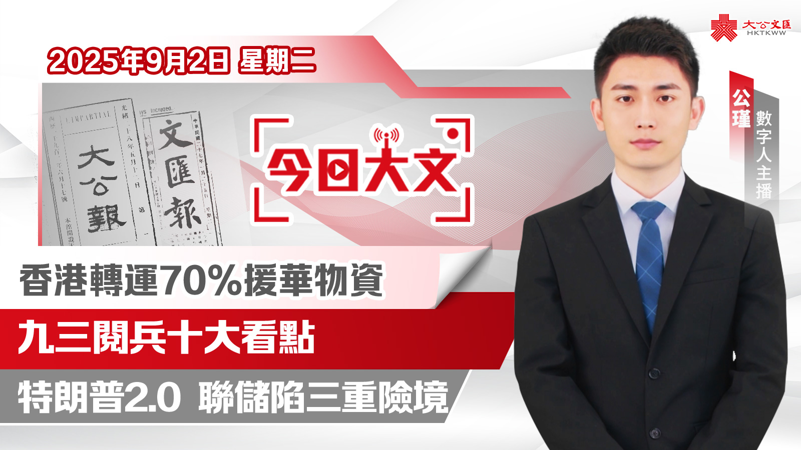 今天是2025年9月2日(星期二),大公文匯網與您速覽報紙看點。