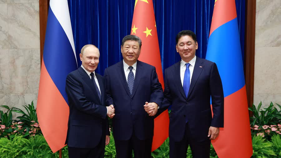 習近平指出,近年來,中俄蒙三方合作穩步發展,取得實實在在的成果。三方合作中期路線圖順利實施,三國貿易額節節攀升,經貿、科技、生態保護、人文合作不斷深化。作為山水相連、休戚與共的友好鄰邦,中方願同俄方、蒙方一道,堅守合作初心,排除外部干擾,攜手推動三方合作高質量發展。