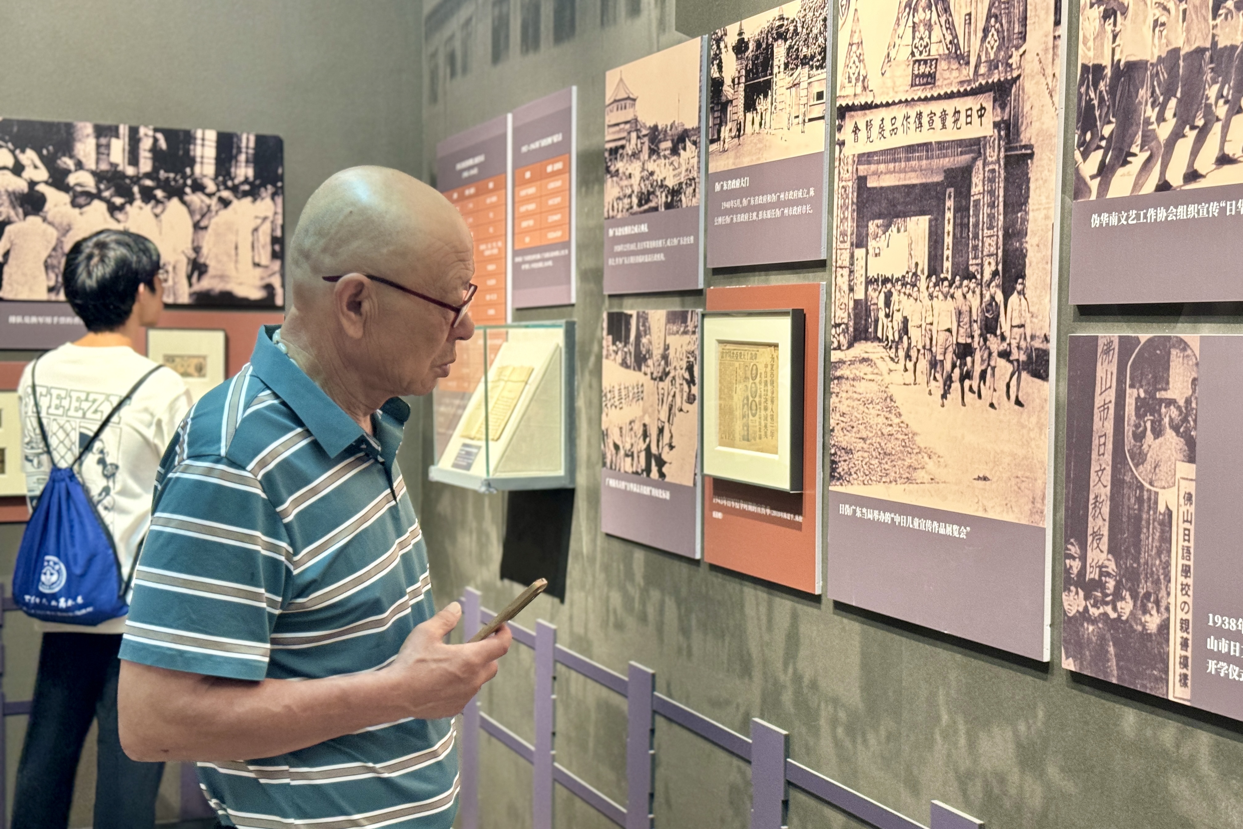 圍繞粵港抗戰的主題,展覽還採用多元化展示手段,設置了「廣州大轟炸」「同心共濟」「省港秘密大營救」等藝術場景,精心打造了「城市秘密斗爭」「烽影長歌」等氛圍空間,讓觀眾身臨其境地感受抗戰時期的烽火歲月。記者看到,參觀過程中有市民壓抑不住地落下眼淚。也有觀眾反覆感慨「我們不能忘記這段歷史」,令人動容。觀眾費老先生表示,沒有前輩們的流血犧牲、前赴後繼,就沒有粵港澳大灣區如今的處處繁榮、經濟富強,「我們的年輕人代代相傳,不要忘記這段歷史!」