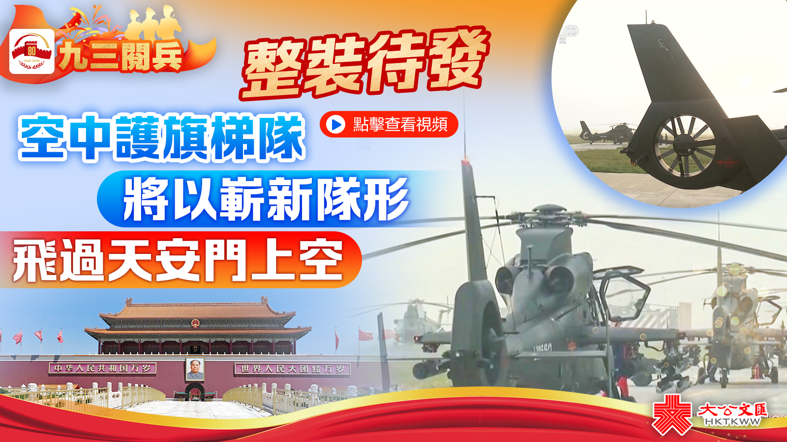 據央視新聞報道,今天是9月3日,中國人民抗日戰爭勝利紀念日。紀念中國人民抗日戰爭暨世界反法西斯戰爭勝利80周年大會將在首都天安門廣場隆重舉行。在閱兵分列式環節,將按空中護旗梯隊、徒步方隊、戰旗方隊、裝備方隊、空中梯隊的順序,依次通過天安門廣場。空中護旗梯隊由多型直升機組成,將以嶄新的隊形,弔掛旗幟和標語,飛過天安門上空,接受祖國和人民的檢閱。現在,這支隊伍的準備情況如何?