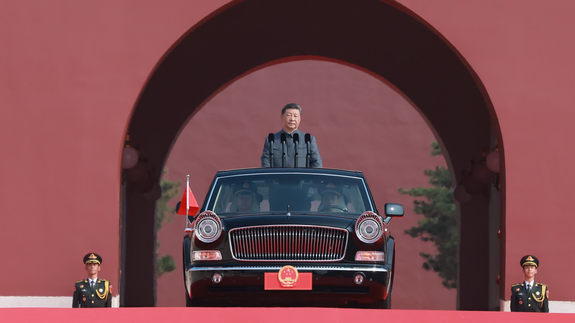 雄壯的軍樂聲中,習近平乘車沿着寬闊的長安街,依次檢閱徒步方隊和裝備方隊。