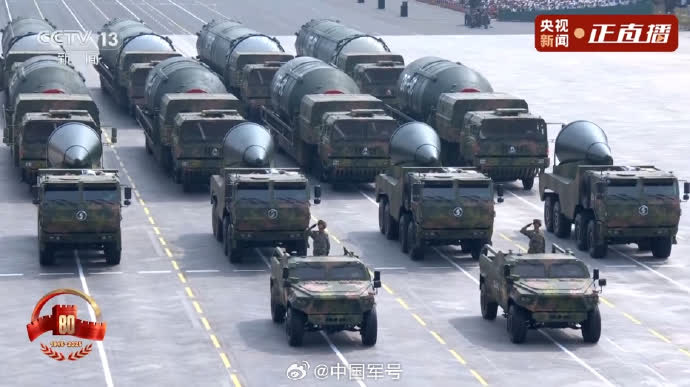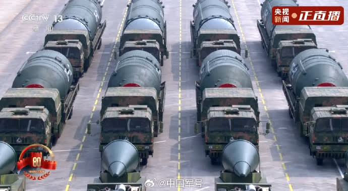 大公文匯網綜合報道,9月3日上午,紀念中國人民抗日戰爭暨世界反法西斯戰爭勝利80周年大會在北京天安門廣場隆重舉行,以盛大閱兵儀式,同世界人民一道紀念這個偉大的日子。核導彈第二方隊3日上午通過天安門廣場,光榮接受檢閱。