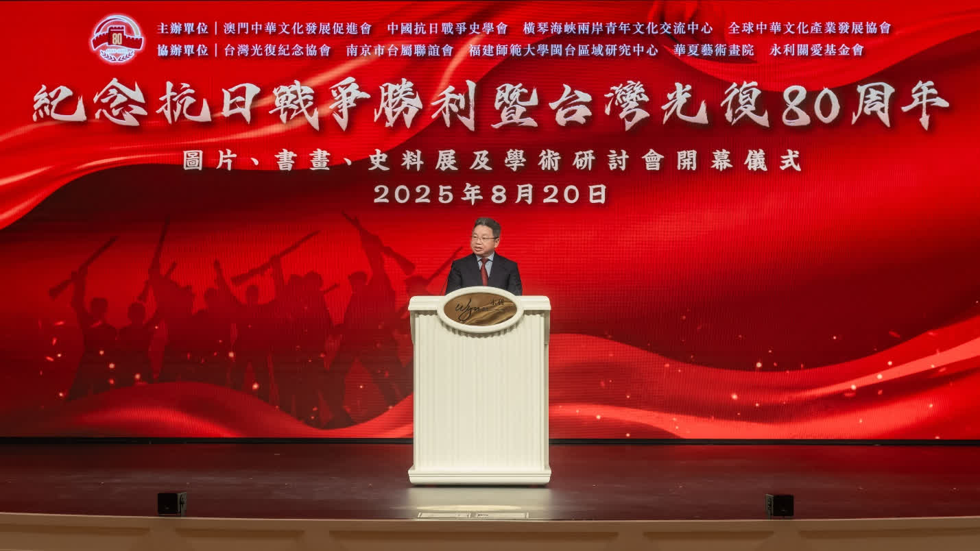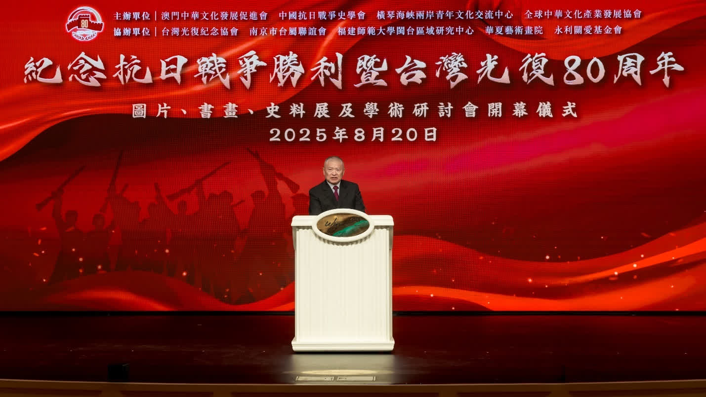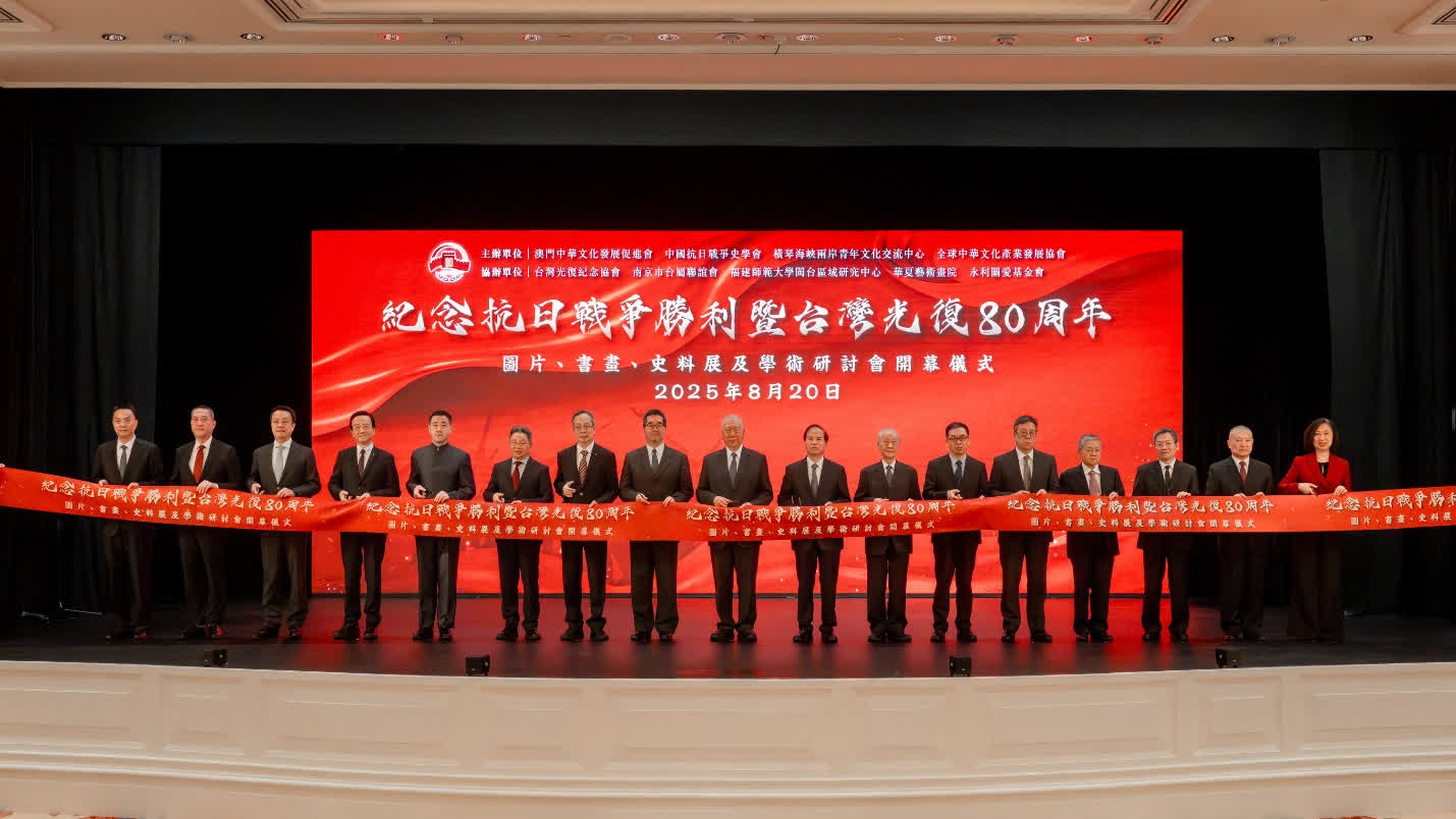 為紀念抗日戰爭勝利與台灣光復80周年,由澳門中華文化促進會、中國抗日戰爭史學會、橫琴海峽兩岸青年文化交流中心、全球中華文化產業發展協會主辦、台灣光復紀念協會、南京市台屬聯誼會、福建師範大學閩台區域研究中心、華夏藝術畫院以及永利關愛基金會協辦的「紀念抗日戰爭勝利暨台灣光復80周年圖片、書畫、史料展及學術研討會開幕儀式」活動於2025年8月20日上午在永利澳門舉行。活動旨在紀念兩岸同胞共同參抗戰歷史事件,引導兩岸青年正確認識中華共同歷史,並向並肩抗戰的兩岸先輩致敬。