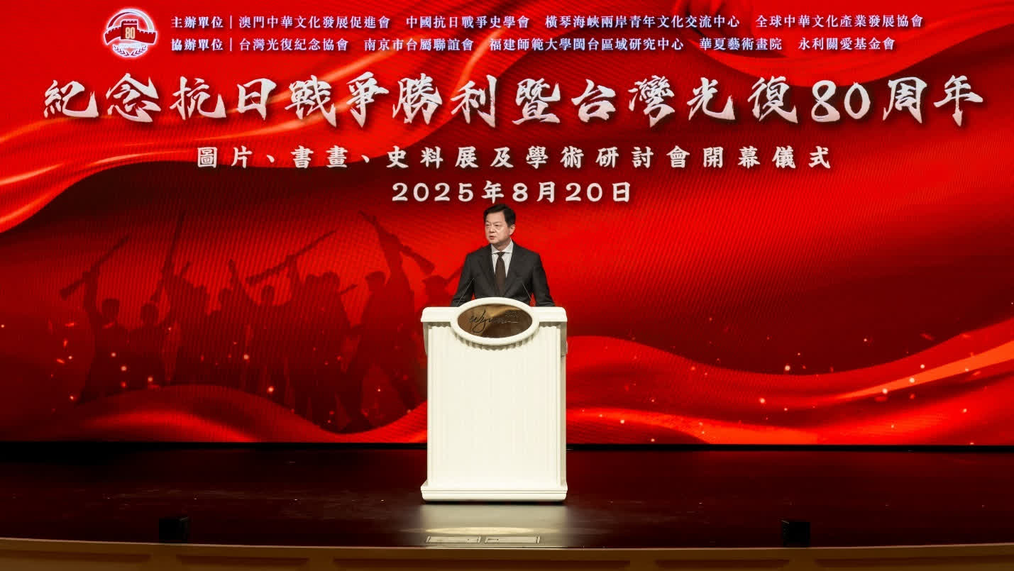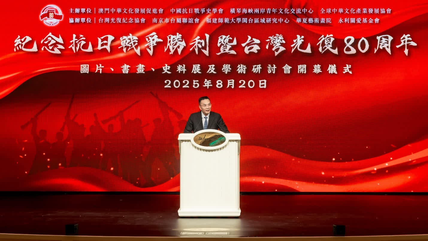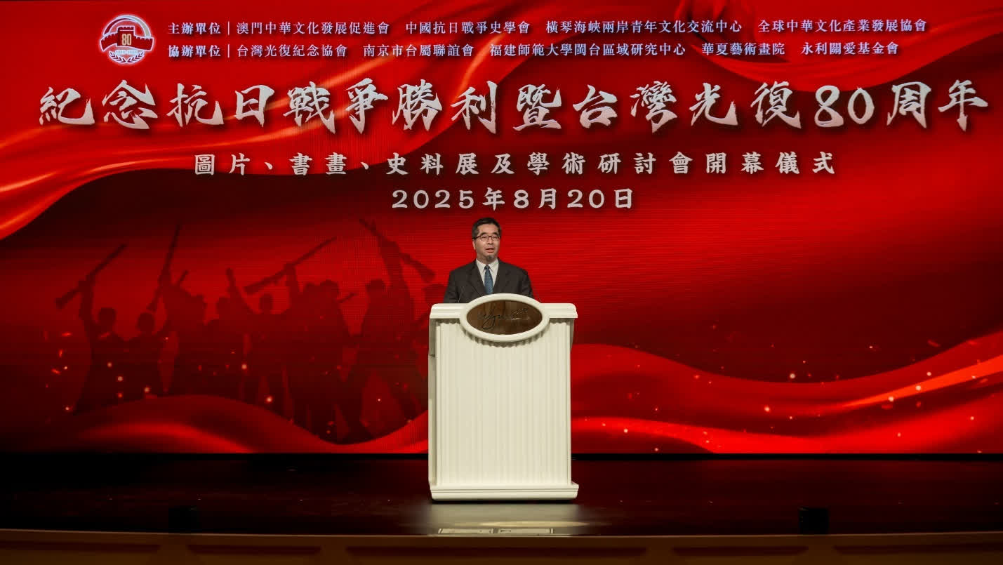 為紀念抗日戰爭勝利與台灣光復80周年,由澳門中華文化促進會、中國抗日戰爭史學會、橫琴海峽兩岸青年文化交流中心、全球中華文化產業發展協會主辦、台灣光復紀念協會、南京市台屬聯誼會、福建師範大學閩台區域研究中心、華夏藝術畫院以及永利關愛基金會協辦的「紀念抗日戰爭勝利暨台灣光復80周年圖片、書畫、史料展及學術研討會開幕儀式」活動於2025年8月20日上午在永利澳門舉行。活動旨在紀念兩岸同胞共同參抗戰歷史事件,引導兩岸青年正確認識中華共同歷史,並向並肩抗戰的兩岸先輩致敬。
