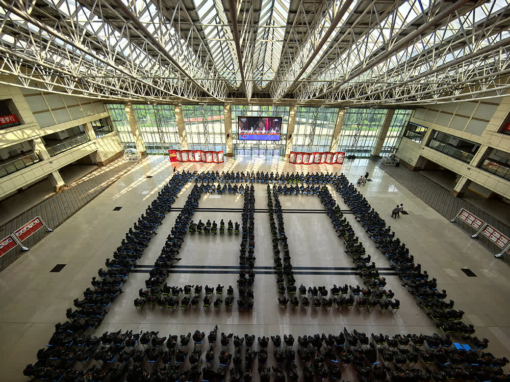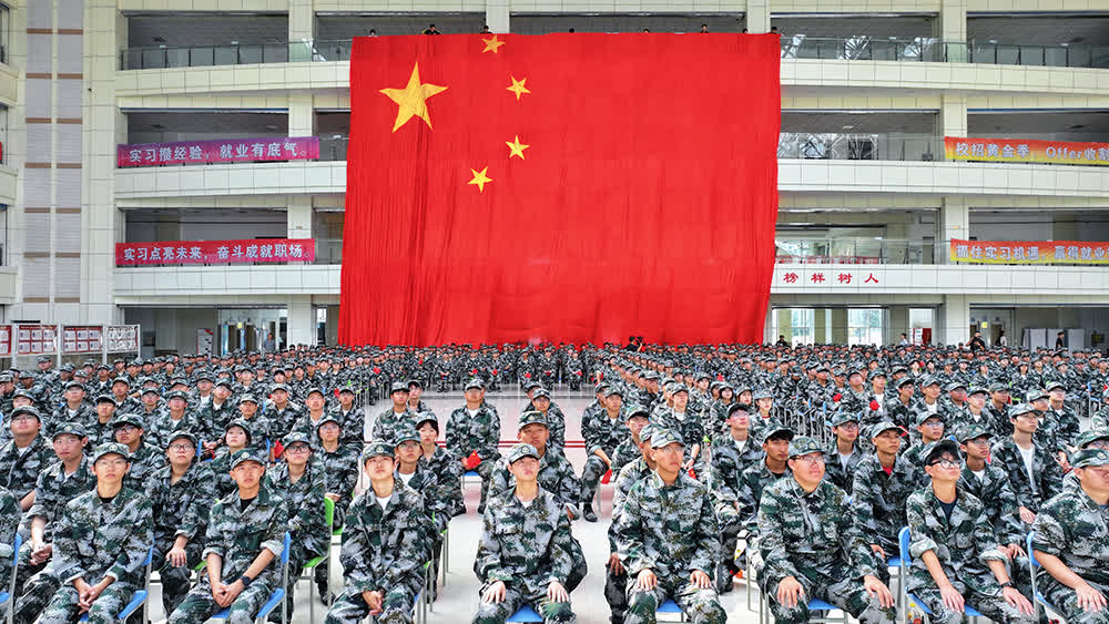 本次活動以「銘記光輝歷史,傳承偉大精神,凝聚奮進力量,擔當復興大任」為主題。在陽光大廳會場內,一面巨幅五星紅旗懸掛在正中央。1100餘名2025級新生在這裏集中觀看勝利日大閱兵,高喊口號:「山河雖無恙,吾輩當自強!」