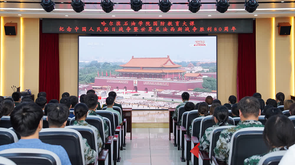 【記者于海江哈爾濱報道】銘記歷史守初心,砥礪奮進擔使命。9月3日上午,哈爾濱石油學院組織全校一萬名師生分別在14個會場集中觀看紀念中國人民抗日戰爭暨世界反法西斯戰爭勝利80周年閱兵直播活動。師生們懷着無比激動的心情,共同見證國威軍威的莊嚴展示,在重溫歷史中汲取奮進力量,以實際行動傳承偉大抗戰精神。