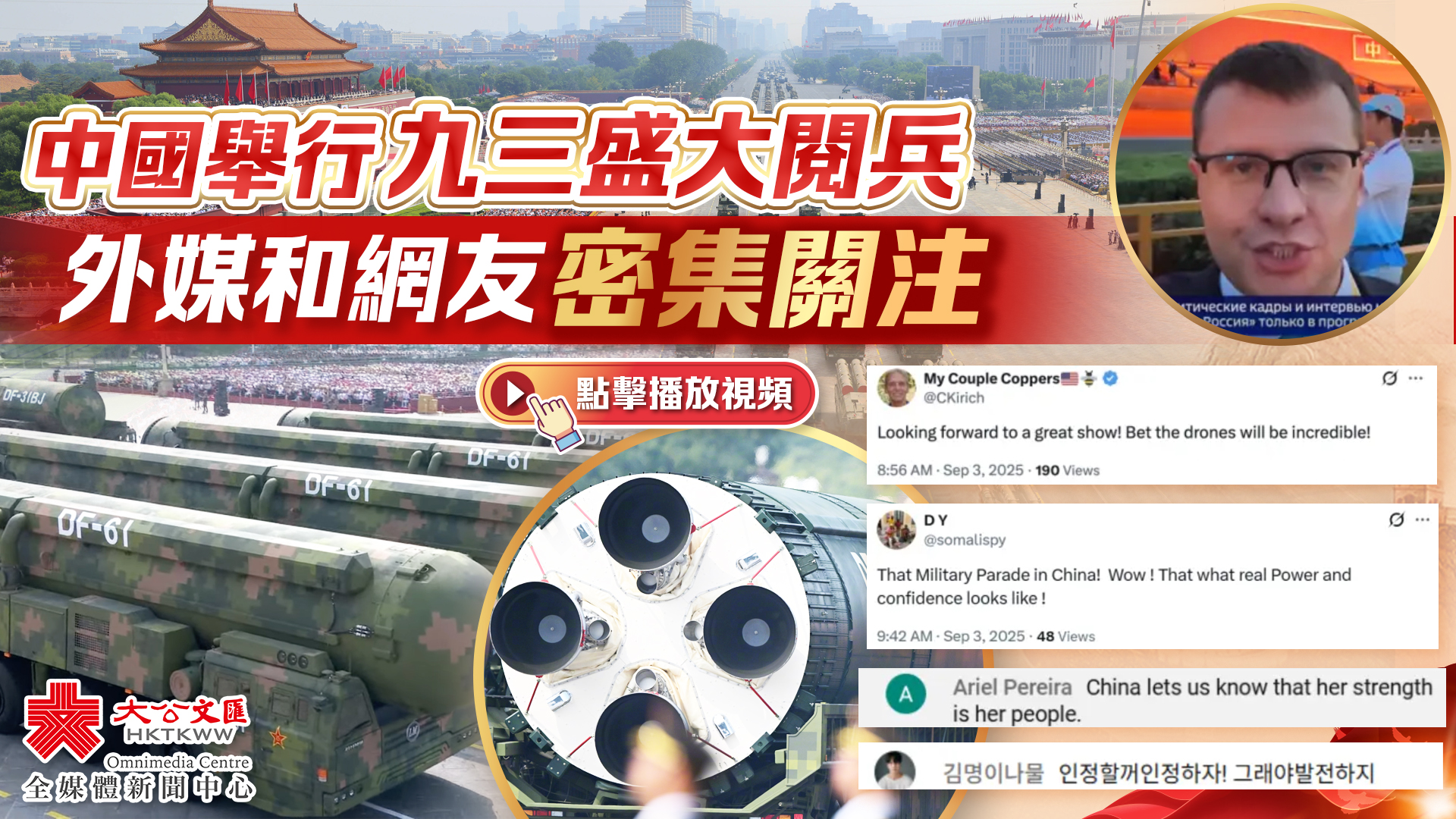 據環球網報道,9月3日上午,紀念中國人民抗日戰爭暨世界反法西斯戰爭勝利80周年大會在北京天安門廣場隆重舉行,盛大的九三閱兵引發外國媒體和網友廣泛關注。