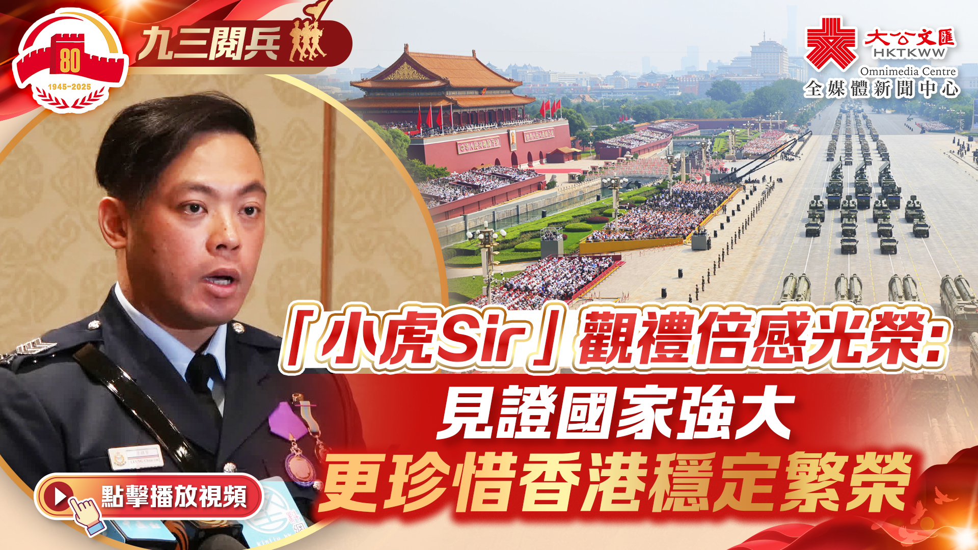 大公文匯全媒體報道,9月3日上午,紀念中國人民抗日戰爭暨世界反法西斯戰爭勝利80周年大會在北京天安門廣場隆重舉行,以盛大閱兵儀式,同世界人民一道紀念這個偉大的日子。香港警員、別號「小虎Sir」的梁鎮賢亦受邀到場觀禮。