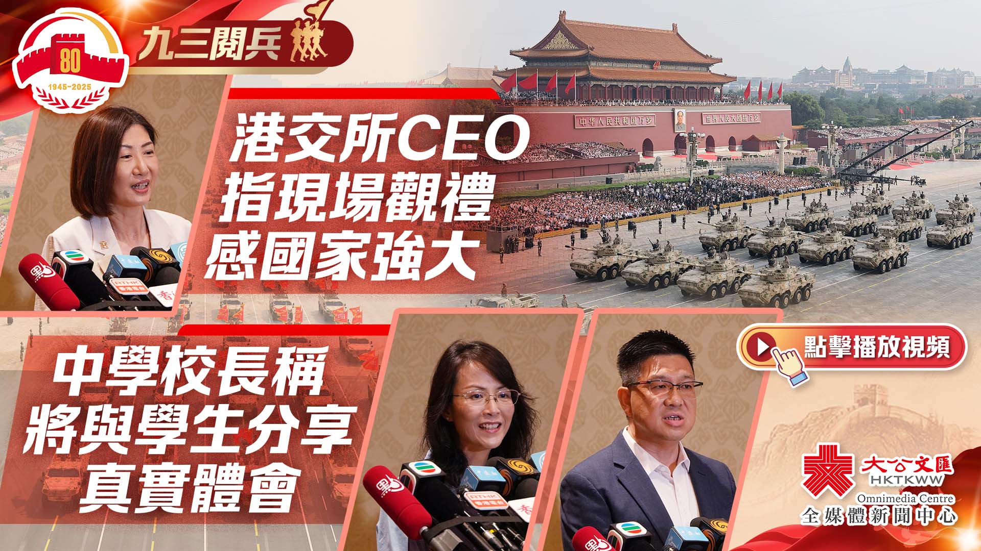 林煒橋說,閱兵儀式精心安排,展示中國軍隊實力。他提到,強大的軍力旨在保護國民,而非侵略他人。在整個閱兵儀式中,可以看到先烈用血汗、甚至奉獻生命保衛國家。他稱,香港其實也有同樣歷史,當年東江縱隊在香港同樣作出了貢獻,香港青年可通過探索歷史路線了解這段過去。