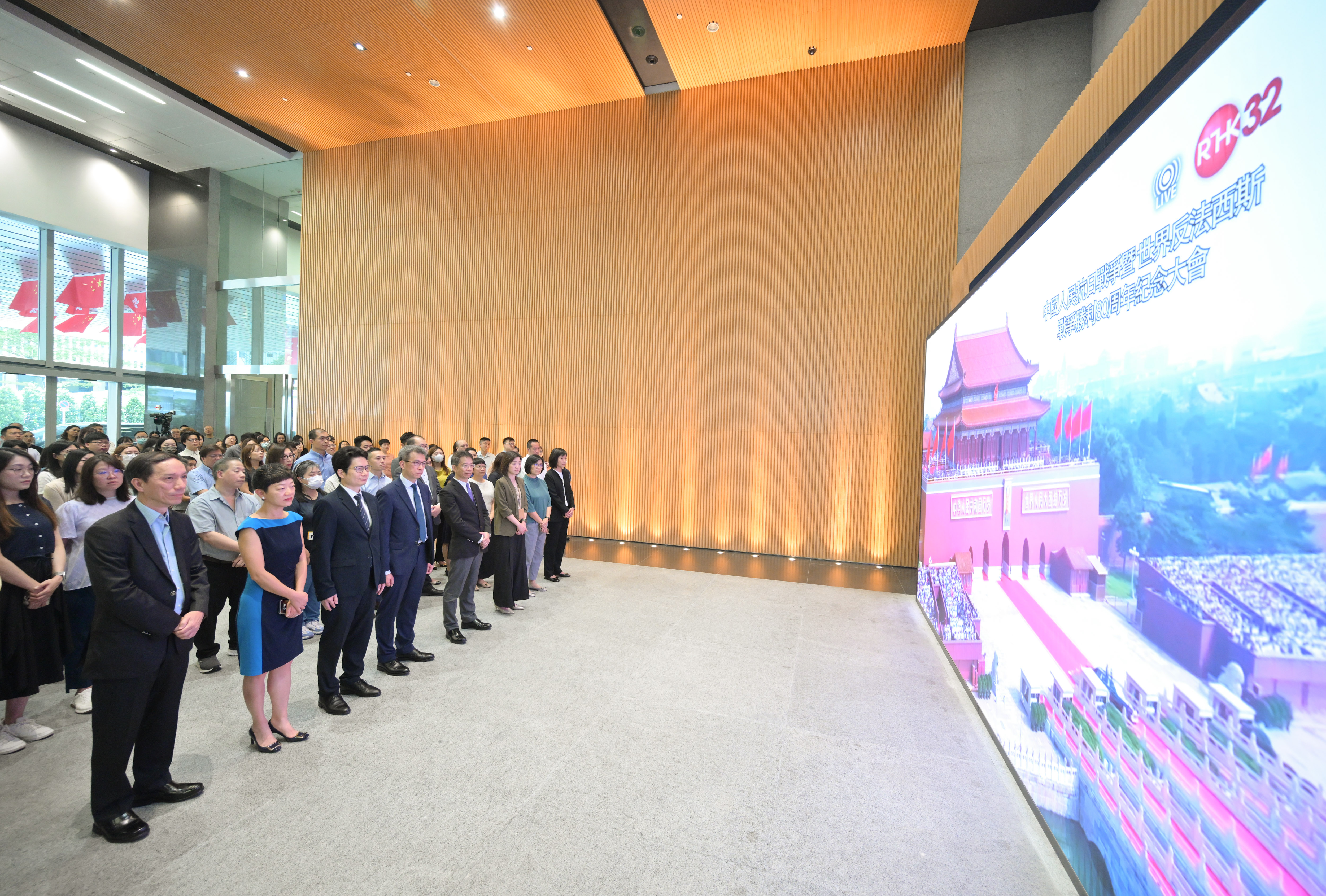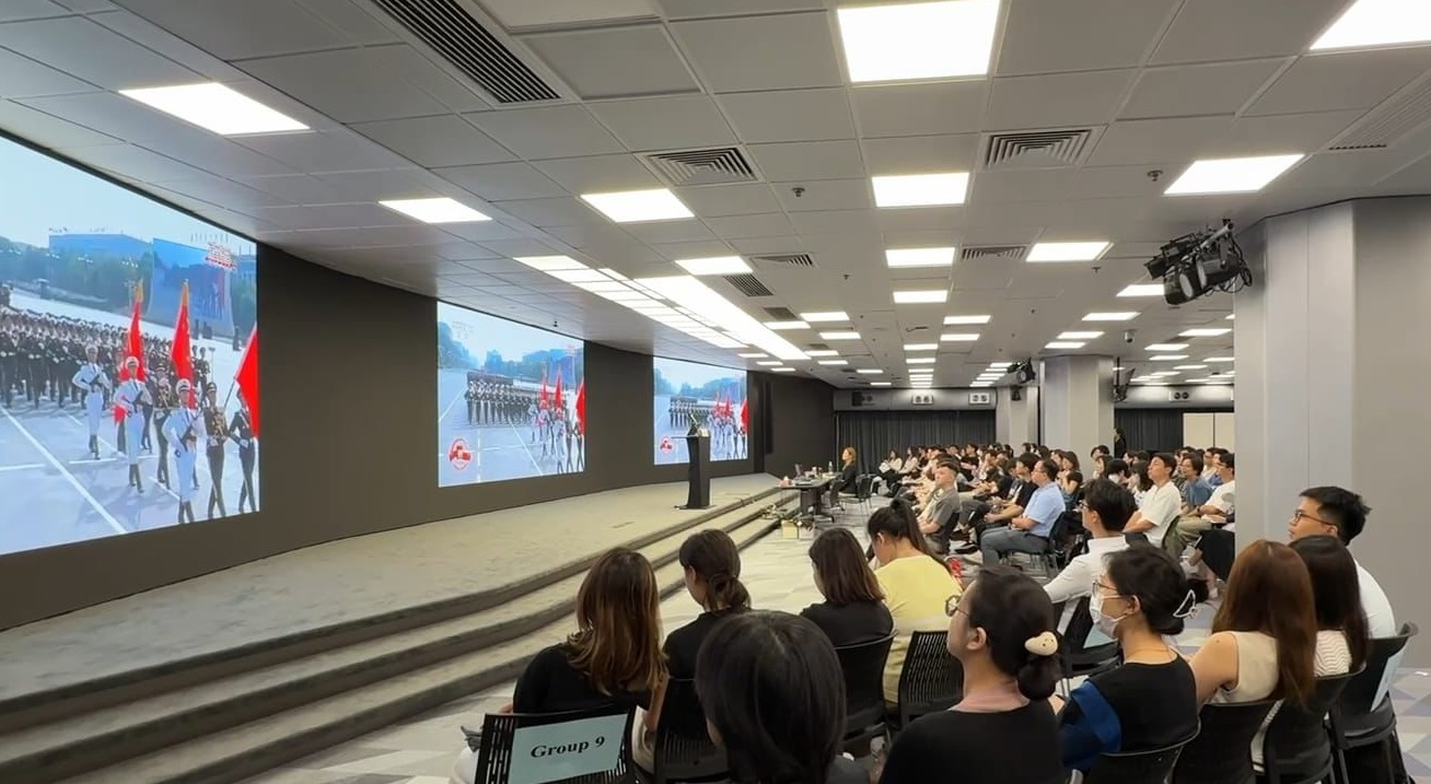 公務員學院更趁此機會實時教學,讓約120名來自20個政府部門的新入職公務員同事在入職培訓課堂期間一起觀看直播,以閱兵儀式作為最新教材,強化他們的國家觀念及國民身分認同。