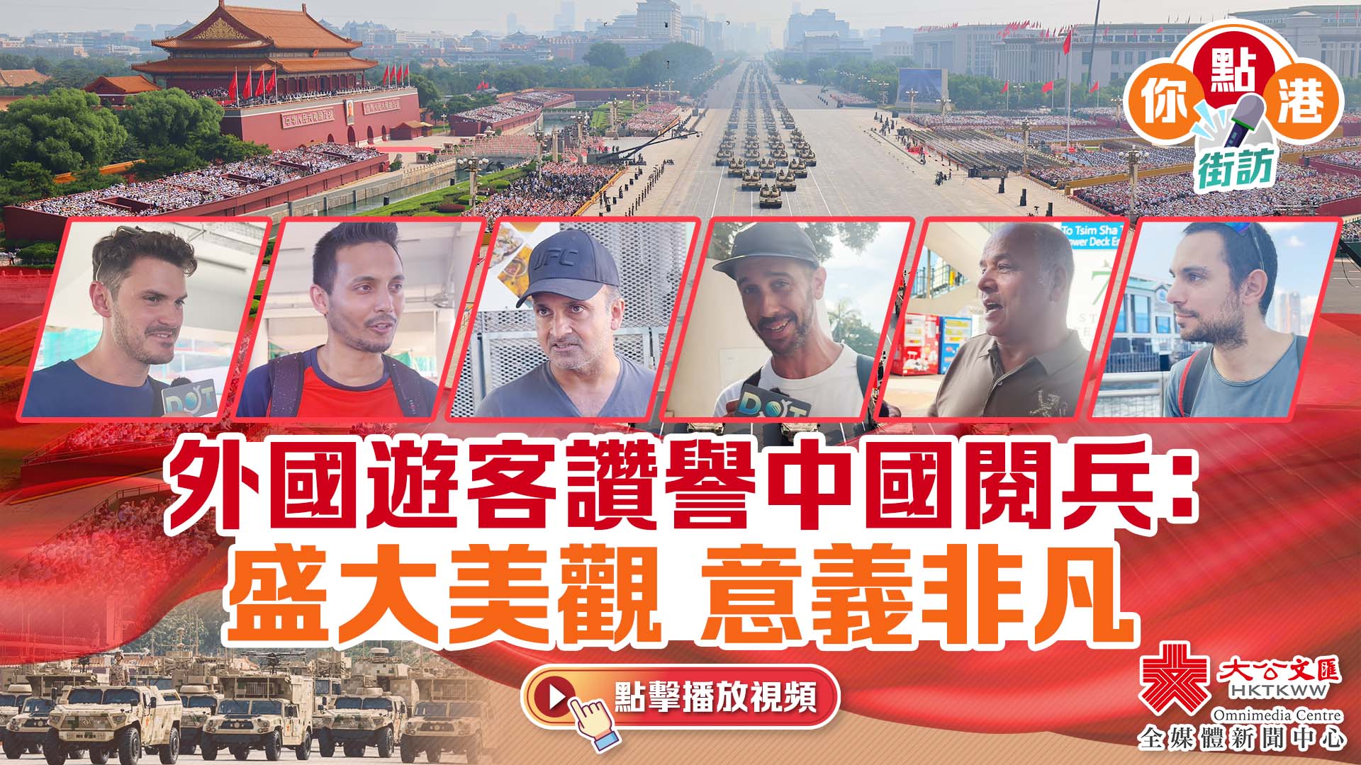 我們走上香港街頭,捕捉外國遊客觀看中國軍事閱兵的反應。他們對今早的閱兵儀式讚不絕口,認為場面盛大且美觀。來自倫敦的Singh分享道,他剛從日本回來,深入了解了南京大屠殺的歷史,感慨那段歷史的殘忍與悲痛。來自德國的Walid則表示,他今早在電視上觀看了閱兵,感受到中國的日益強大,令人印象深刻。來自澳大利亞的Joseph也對這場閱兵讚譽有加,他提到自己了解過日本在侵華戰爭中的種種行為,認為今天的閱兵意義非凡。