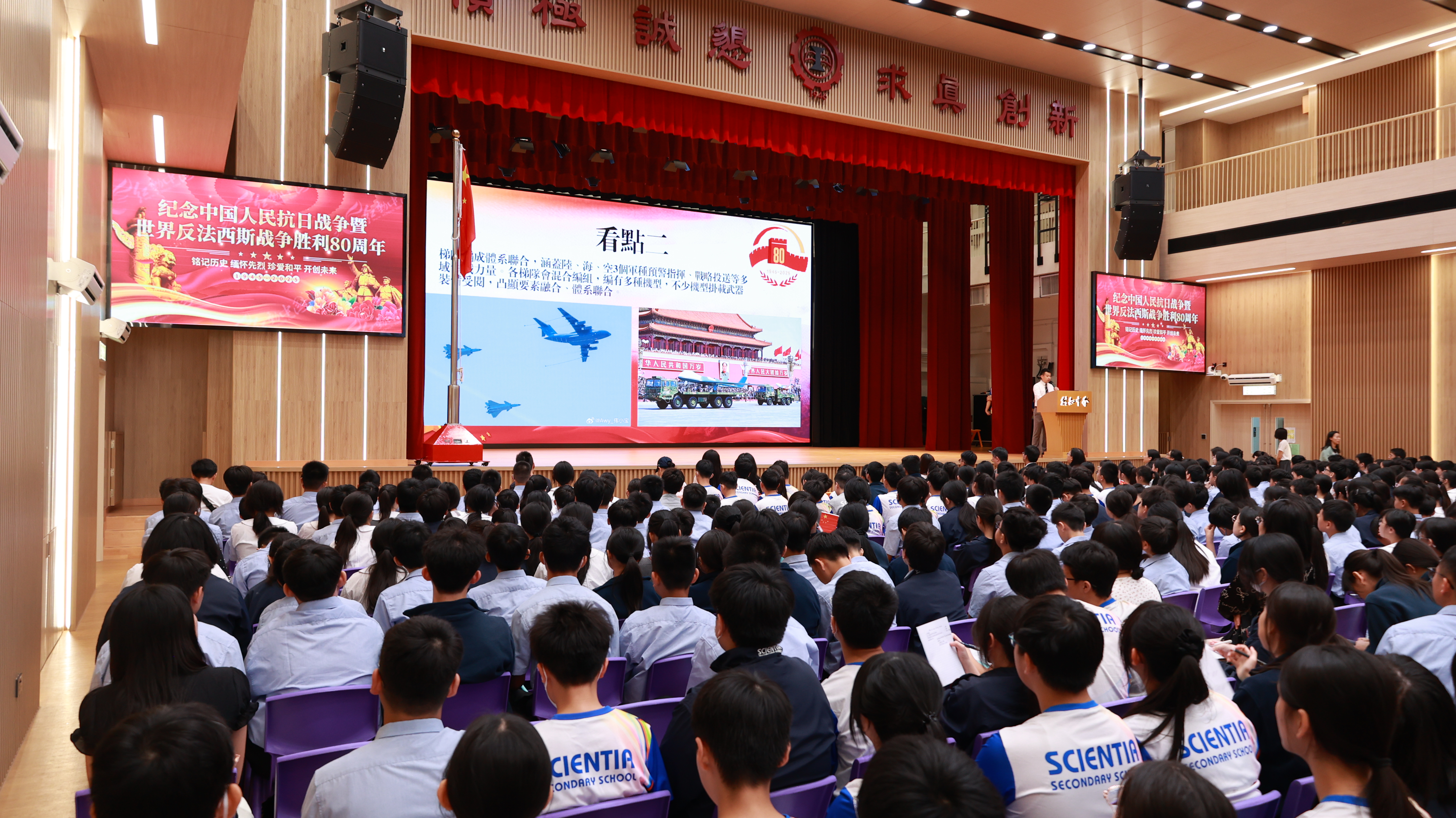 大公文匯全媒體報道,今日(9月3日)上午,紀念中國人民抗日戰爭暨世界反法西斯戰爭勝利80周年大會在北京天安門廣場隆重舉行。創知中學組織逾千名師生員工在學校禮堂共同觀看閱兵儀式直播。校方期望透過此活動,引導學生反思歷史,了解國家發展,並從中學習自強不息的精神。署理教育局局長施俊輝亦親臨學校,與師生共同參與活動。