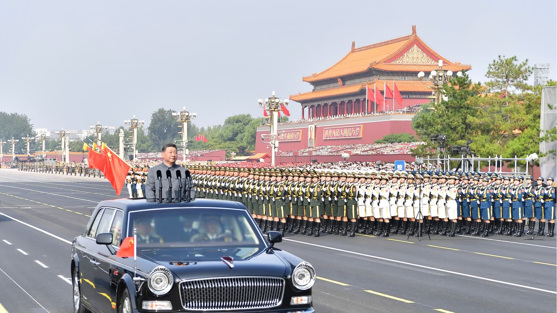雄壯的軍樂聲中,習近平乘車沿着寬闊的長安街,依次檢閱13個徒步方隊、1個戰旗方隊、22個裝備方隊。受閱部隊軍容嚴整、意氣風發,鐵甲戰車整齊列陣、威風凜凜。這是人民軍隊奮進建軍百年的嶄新亮相,這是中華民族捍衛世界和平的堅定宣示。