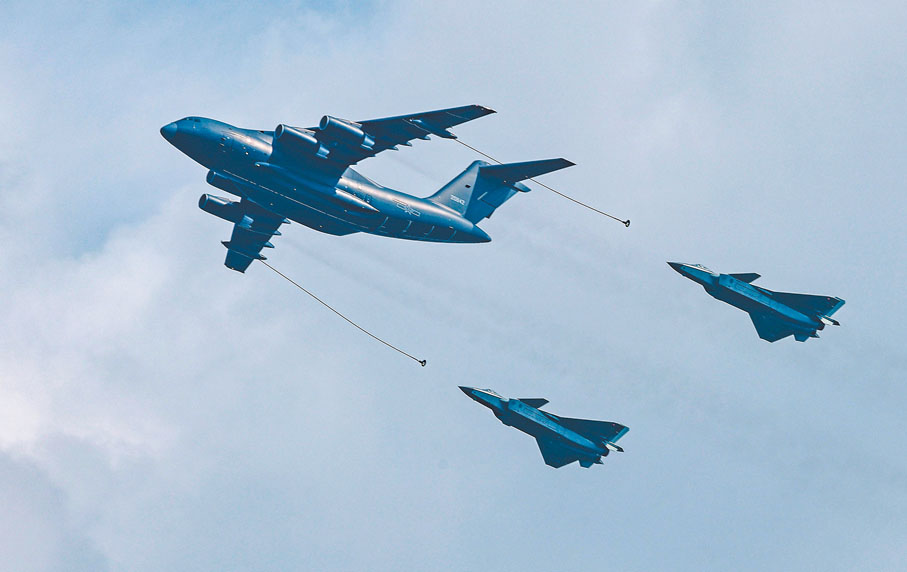 「空軍作戰集群掠空而過,突出顯示了體系化作戰的威力」,洪源說。人民空軍經過運油-20的「加持」下,具備了遠程甚至跨洲際作戰能力,能夠運送核常兩用的空射型中遠程彈道導彈、中遠程反艦導彈、遠程巡航導彈。「這就意味着我國已經正式擁有了空基核作戰能力」,洪源表示,這是作為核大國的標配,也就是三位一體戰略核力量正式確立。
