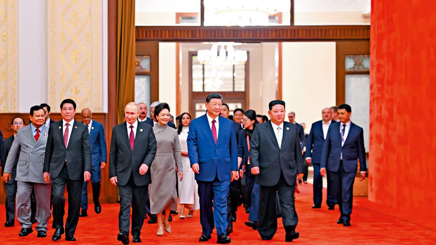 9月3日下午,國家主席習近平在北京人民大會堂會見專程來華出席紀念中國人民抗日戰爭暨世界反法西斯戰爭勝利80周年活動的印度尼西亞總統普拉博沃。