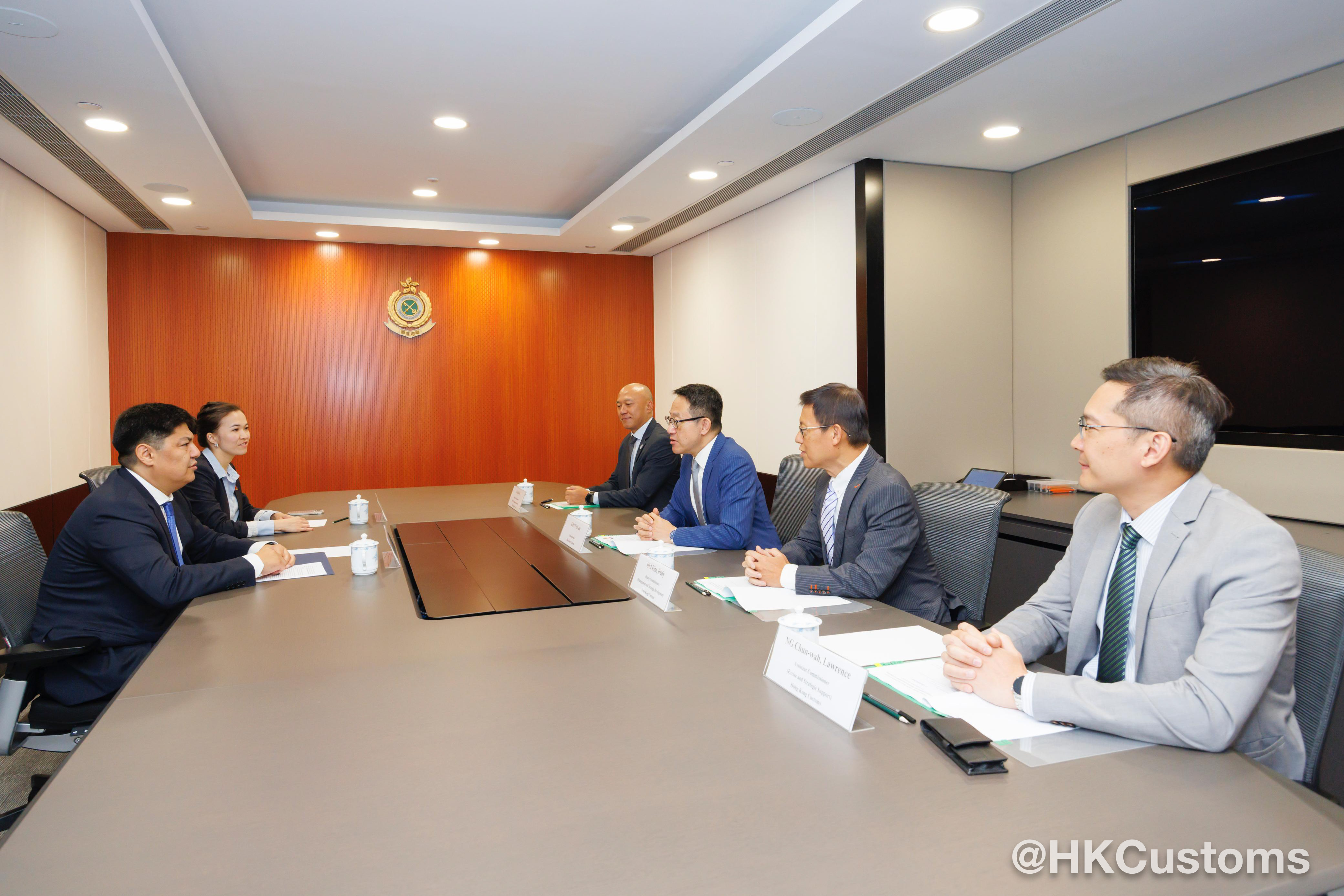 哈薩克斯坦共和國駐港總領事Bauyrzhan DOSMANBETOV 於八月二十七日禮節性拜訪香港海關關長陳子達,藉此增進雙方友好關係及加強業務聯繫。