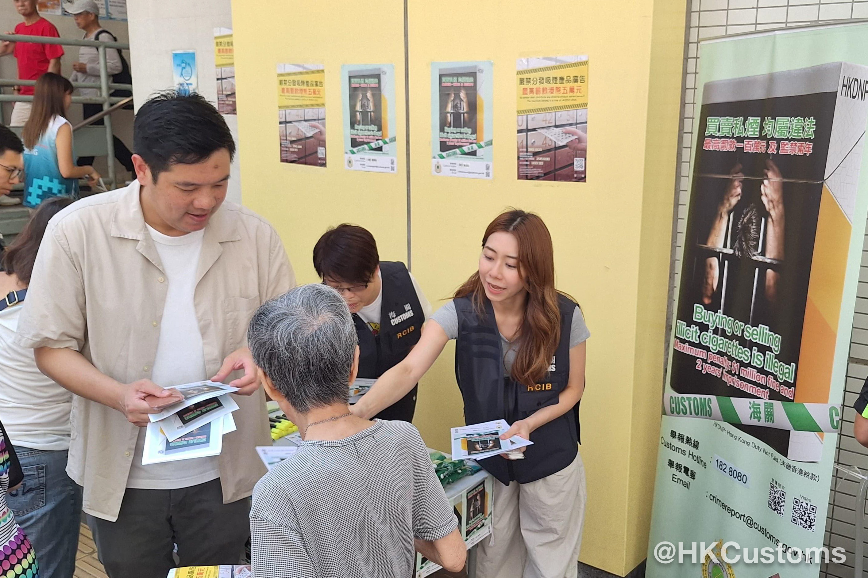 香港海關人員除於屋邨範圍巡查,亦向屋邨保安員、居民及商戶宣傳政府提高私煙相關罪行罰則的修例建議,並鼓勵他們向香港海關舉報懷疑私煙活動。