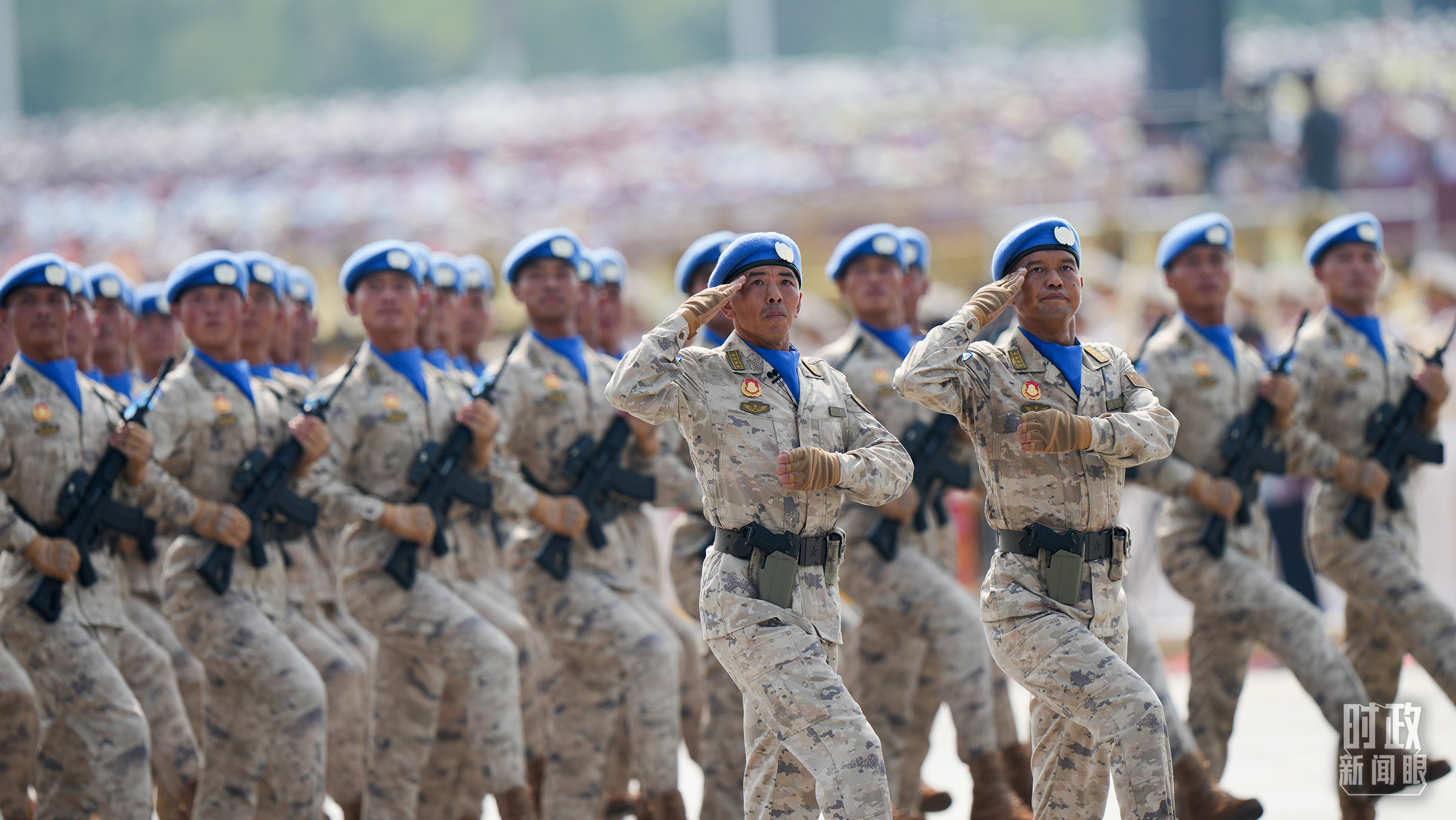閱兵式上,維和部隊方隊闊步走來。今年是中國軍隊參加聯合國維和行動35周年,累計派遣超過5萬名維和官兵,中國是聯合國安理會常任理事國中派出維和人員最多的國家。「中國藍盔」不懼艱險、不辱使命,以熱血鍛鑄和平盾牌,用行動譜寫大國擔當,已經成為守護世界和平安寧的關鍵穩定力量。