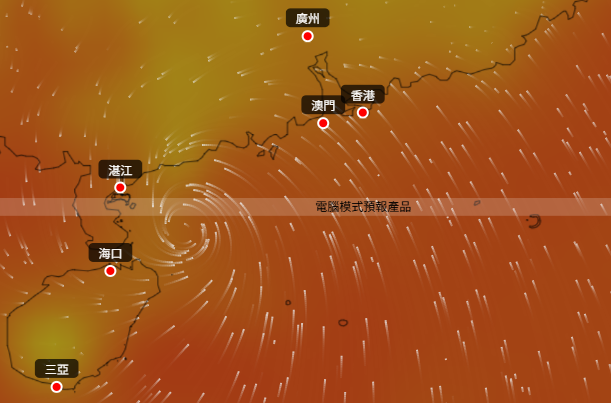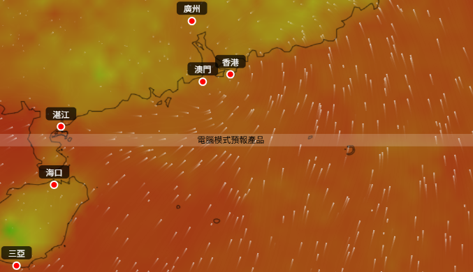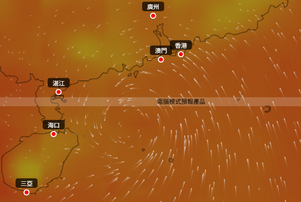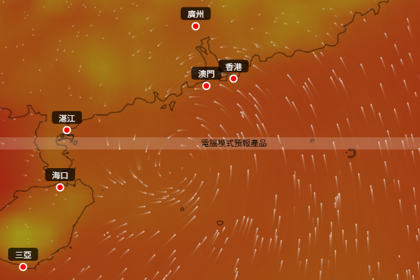 目前,AI人工智能預報系統「風烏」、「盤古」及「伏羲」均預測熱帶氣旋將於明後日(9月5日至6日)在南海生成,並在香港西南方向掠過,在周日至下周一(9月6日至7日)最接近香港。歐洲中期天氣預報中心(ECMWF)預測熱帶氣旋路徑則更迫近本港,甚至可能在珠江口一帶登陸。