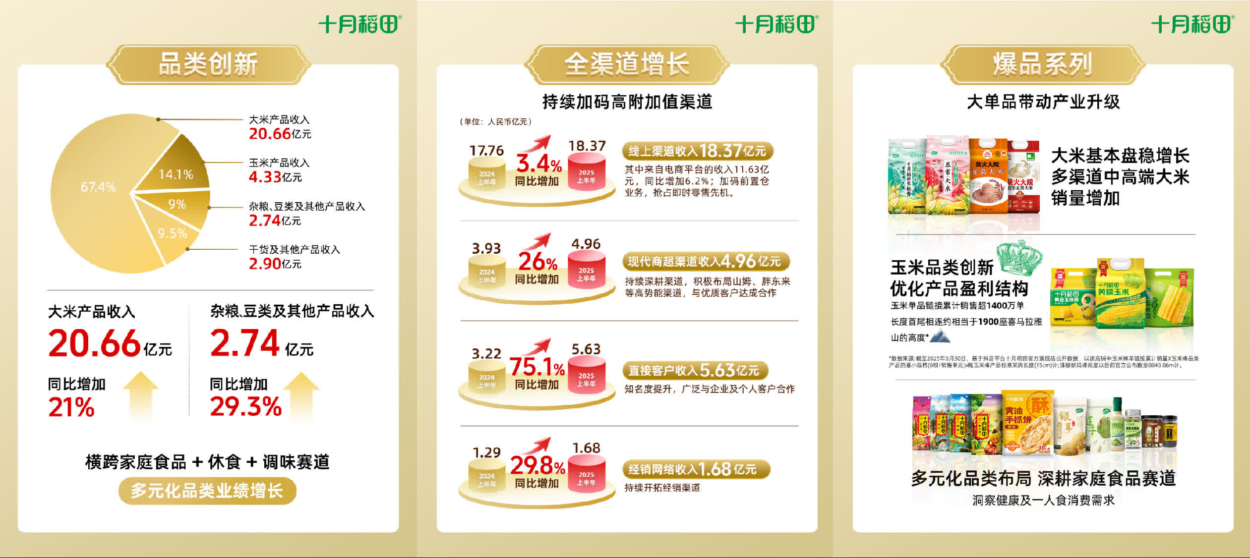 2025年上半年,十月稻田(股份代號:9676.HK)以營利雙增的亮眼成績,再次向市場交出了一份超預期的答卷。業績報告顯示,多款核心單品銷售額突破億元(人民幣,下同),線上線下渠道同步推進,多IP跨界聯名精準觸達年輕消費群體……這家從東北優質糧食產區走出的品牌,正憑藉清晰的戰略布局和持續優化的運營能力,穩步邁向「家庭食品創新品牌」的新階段。
