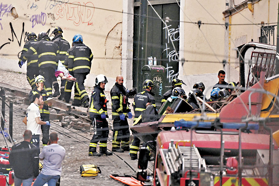 香港文匯報綜合報道,葡萄牙首都里斯本周三(9月3日)發生登山纜車意外,當地標誌性登山纜車「榮耀升降機」在行駛途中突然失控脫軌,撞向附近一幢建築物,造成至少17人死亡、超過20人受傷。當地傳媒報道纜車事發時疑似有一條安全鋼索斷裂,導致纜車失控。葡萄牙政府宣布周四為全國哀悼日,悼念事故罹難者。