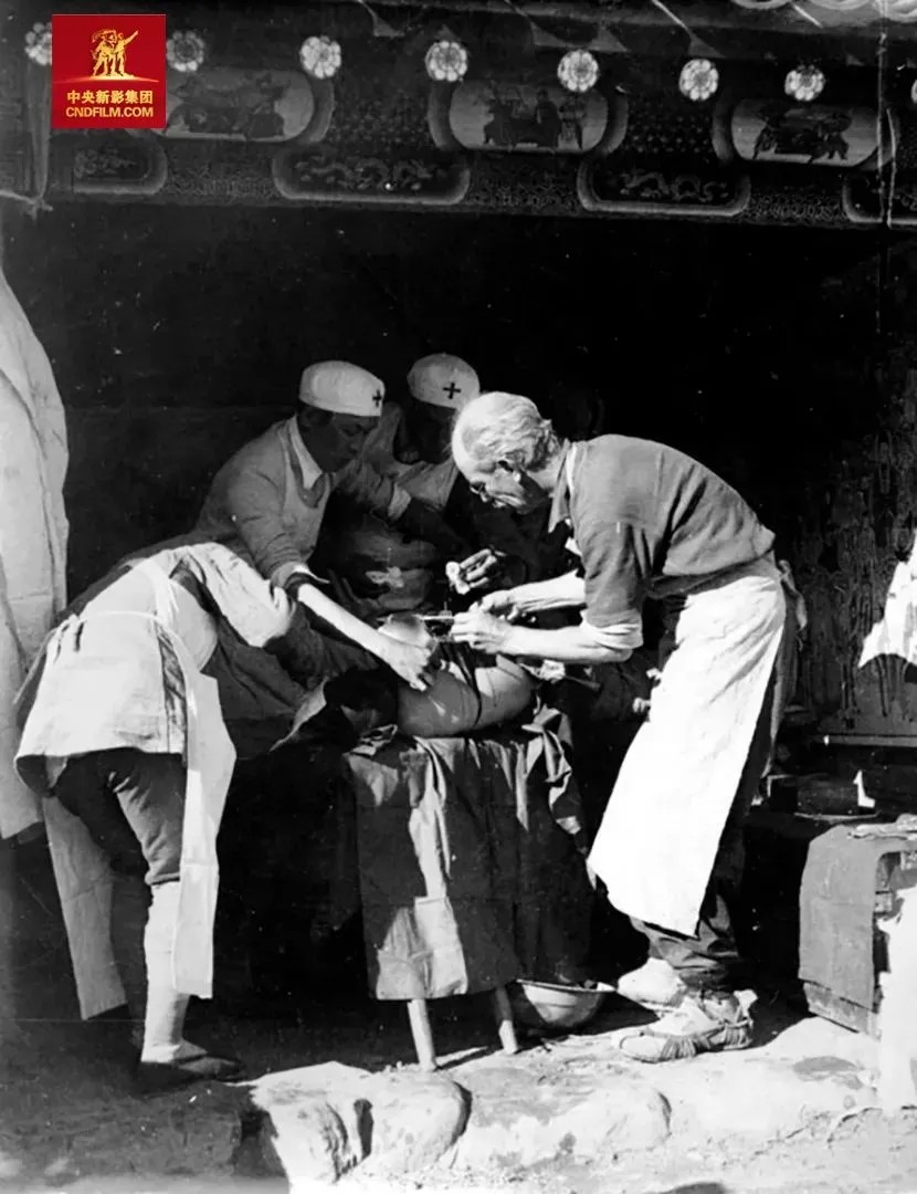抗日戰爭時期,攝影師吳印咸隨延安電影團一起到晉察冀抗日前線採訪,正好趕上白求恩在淶源縣孫家莊小廟為傷員做手術。
