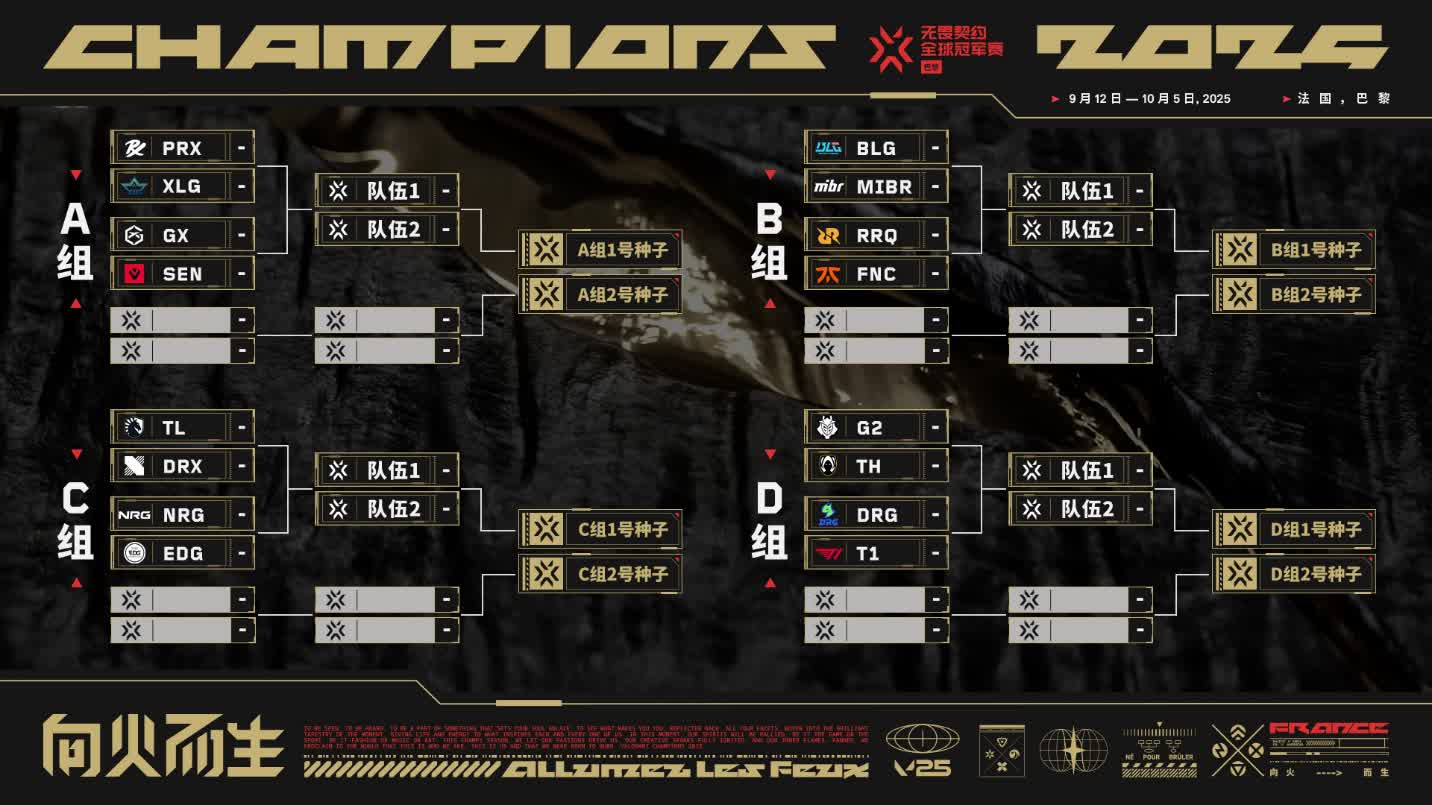 從VCT CN 聯賽、VCT 美洲聯賽、VCT EMEA 聯賽和 VCT 太平洋聯賽到全球賽事,最出色的十六支隊伍晉級無畏契約冠軍巡迴賽的最終賽場。其中: