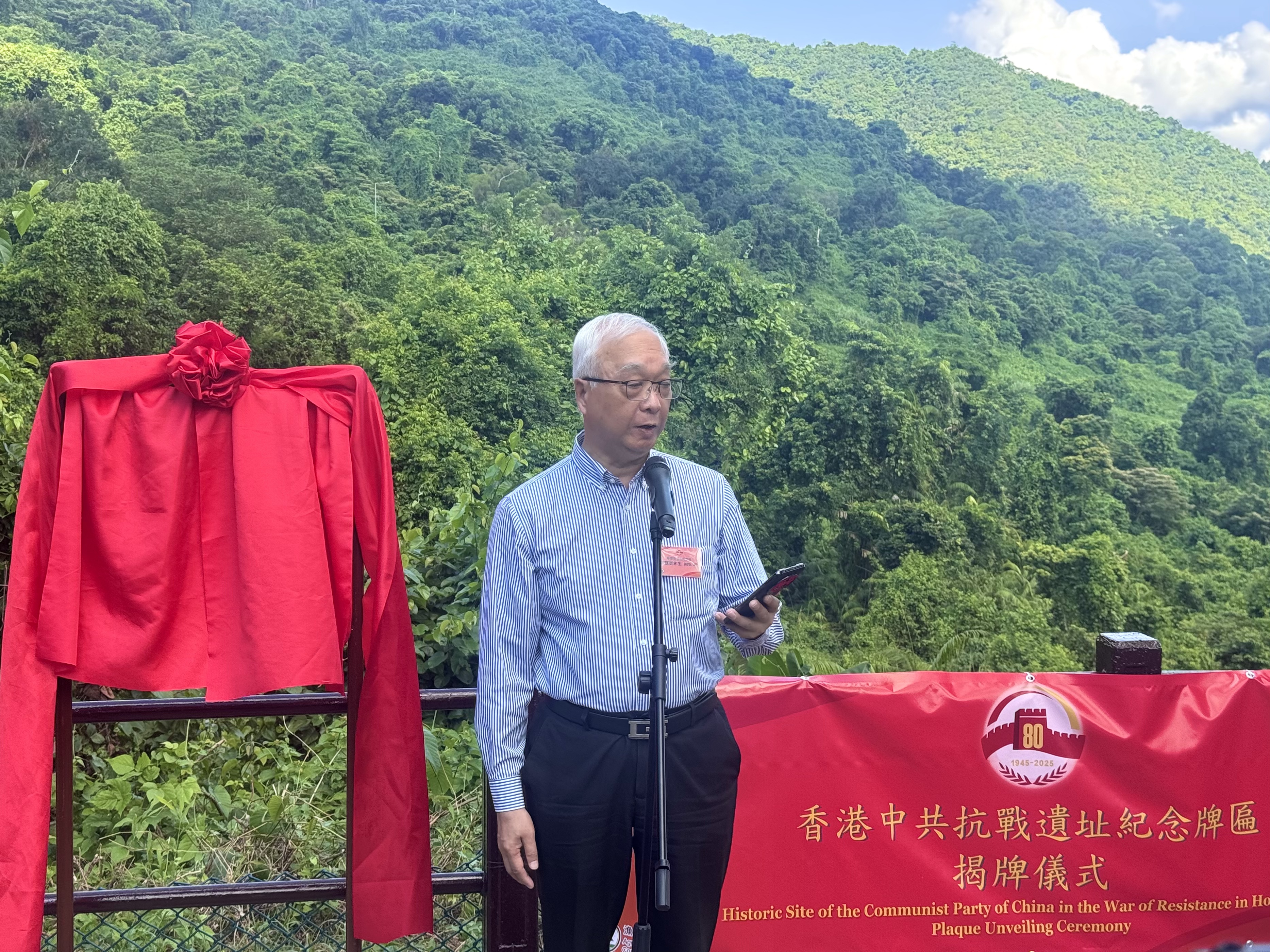 (大公文匯全媒體記者 梁譯尹)為紀念中國人民抗日戰爭暨世界反法西斯戰爭勝利80周年,環境及生態局局長謝展寰今日(9月5日)在馬鞍山郊野公園西貢企嶺下西沙路主持香港中共抗戰遺址紀念牌匾揭牌儀式。