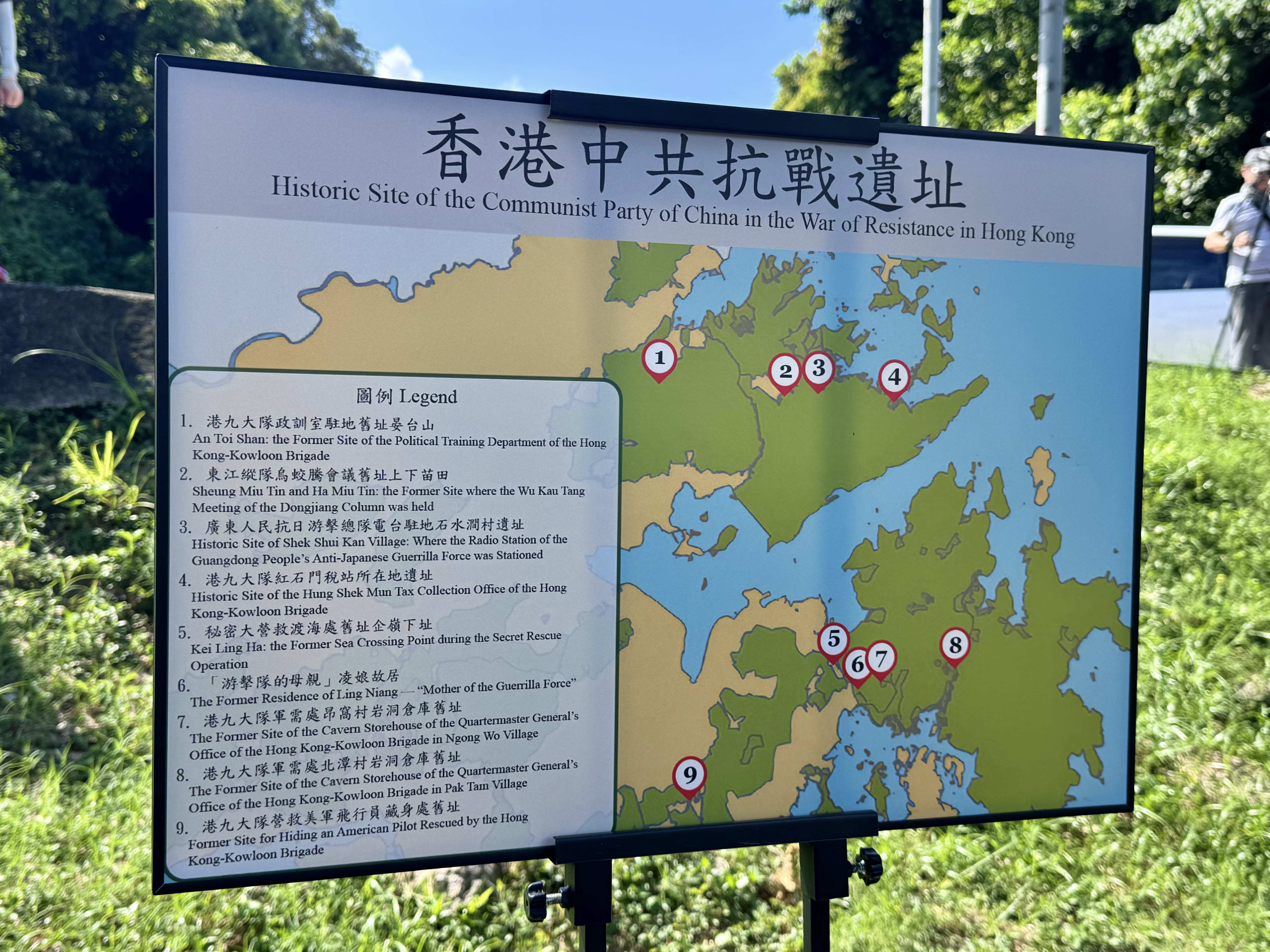 據介紹,香港的郊野公園有豐富的歷史資源,環境及生態局與漁護署致力保護及推廣這些具有抗戰歷史價值的自然及文化資源,在多處遺址設立了紀念牌匾,以介紹和銘記抗戰時期的英雄事跡和沉重歷史,例如港九大隊政訓室駐地舊址晏台山、東江縱隊「烏蛟騰會議」舊址上下苗田等,市民可前往參觀,更加全面深入地了解抗戰故事。
