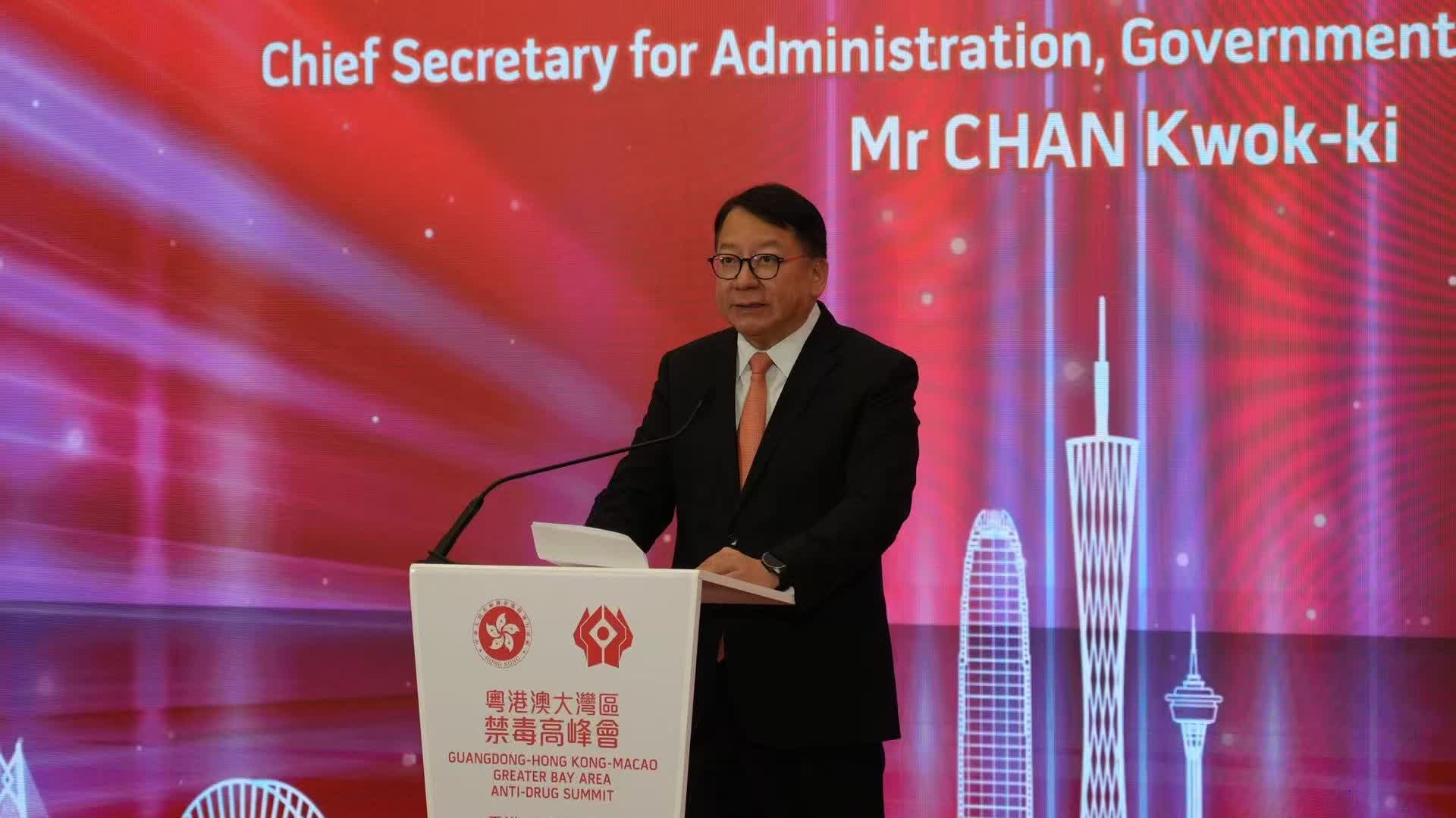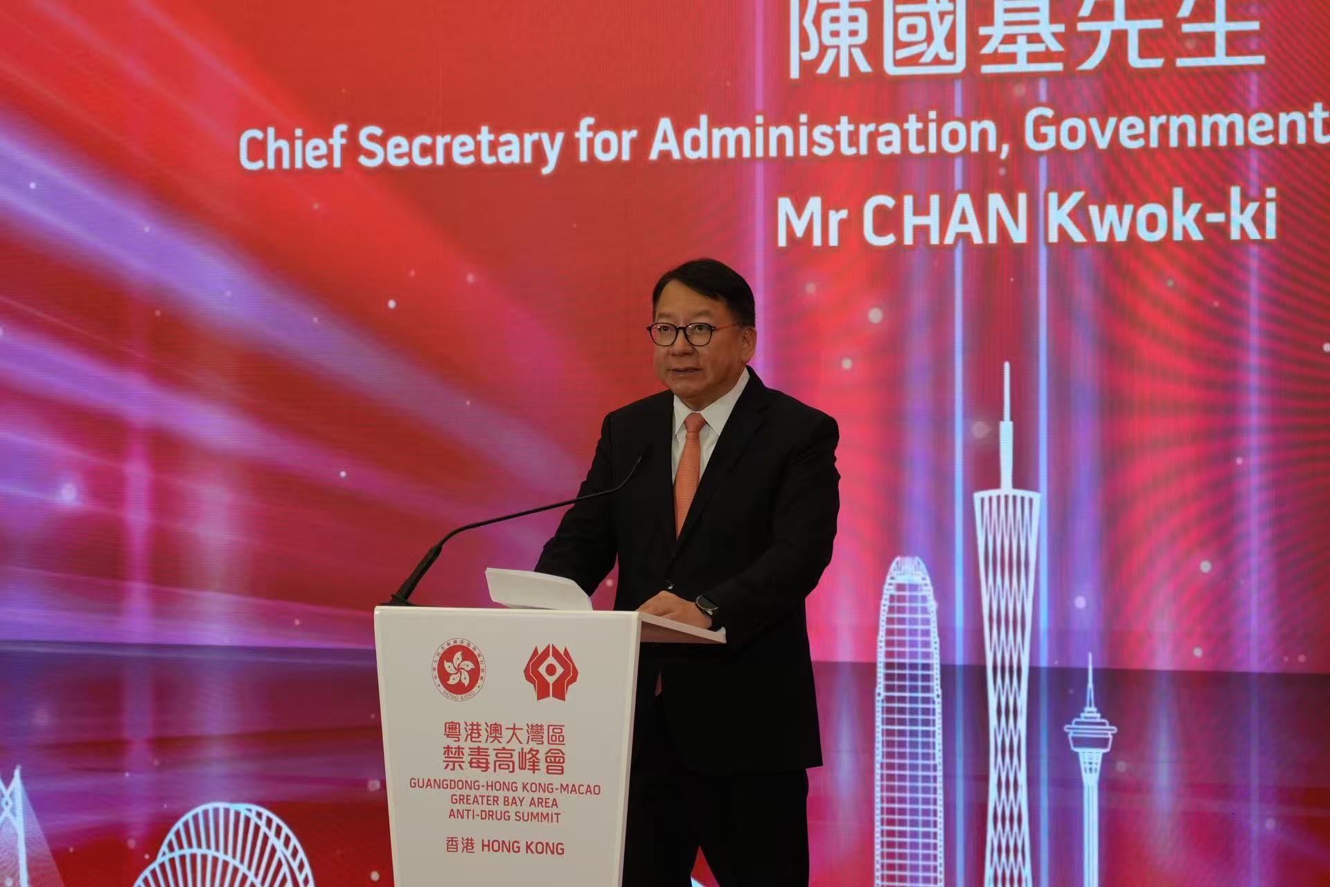 政務司司長陳國基致辭時表示,特區政府一直不遺餘力推動禁毒工作,採取多管齊下的策略,包括堵截毒品源頭、加強執法及宣傳教育等,同時為吸毒人士提供戒毒的治療及康復服務,協助其重返社會。毒品問題是全球共同需要面對的問題,犯罪手法日趨複雜,跨境犯罪層出不窮,禁毒工作需要匯聚多方力量推進,香港特區需與內地、澳門特區,以及其他地區的執法機關保持緊密聯繫、交流情報,採取聯合行動,共同打擊毒品,遏制毒品進入社區。