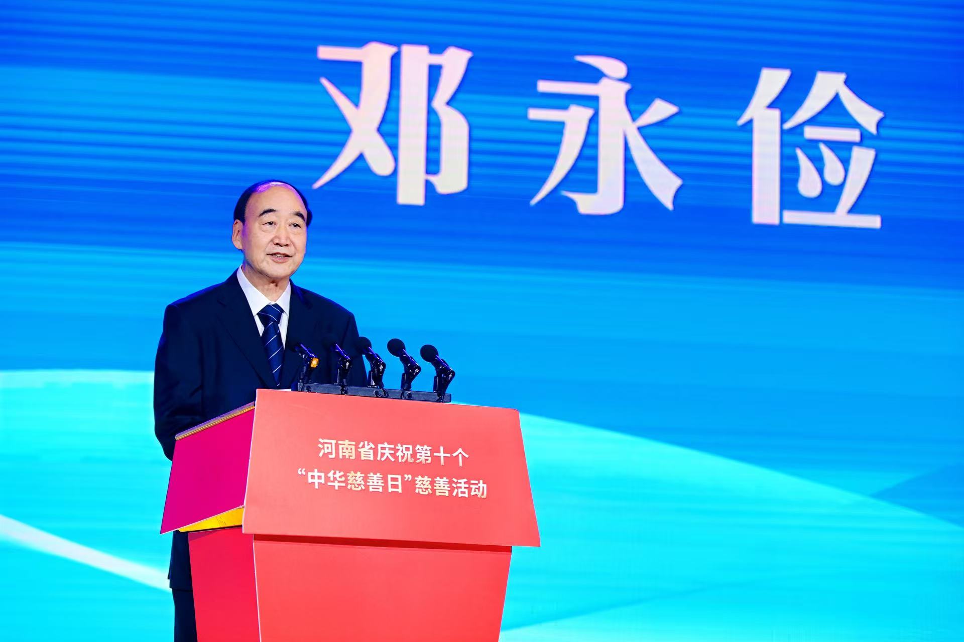 鄧永儉會長代表活動主辦單位致辭。鄧永儉指出,2016年《慈善法》頒布實施這十年,省慈善聯合總會牢記慈善宗旨,團結帶領全省各級各類慈善組織,建立起了一個遍布全省、作用突出的慈善救助網絡,鍛造了一支政治堅定、作風過硬、業務精良、敢於擔當的慈善工作隊伍,構建了「法治慈善、實力慈善、高效慈善、全民慈善、陽光慈善」工作布局,在助力社會保障、弘揚慈善文化、推進共同富裕的歷史進程中發揮了重要作用。鄧永儉指出,這十年,我們堅持黨建引領,深入貫徹習近平總書記關於慈善工作的重要論述,以高質量黨建引領慈善事業高質量發展。這十年,我們堅持依法興善,帶頭學習貫徹《慈善法》,堅持實施信息公開制度,自覺接受各方面的監督,讓慈善工作始終在陽光下運行。這十年,我們聚焦主責主業,充分發揮慈善工作第三次分配作用,實施了一系列具有較大影響力的品牌項目和活動,讓更多的困難群眾沐浴到慈善救助的陽光。這十年,我們堅持守正創新,把數字慈善作為一項重大戰略選擇,推動河南數字慈善工作走在了全國數字慈善工作的前列。這十年,我們高度重視應急慈善,充分發揮應急慈善在急難險重任務中的作用,為我省疫情防控、抗洪救災和災後重建工作貢獻了慈善力量。這十年,我們深化行業協同,始終認真履行對全省慈善行業的引領、協調、指導、服務等職能,積極推動「縱向到底、橫向到邊」慈善組織網絡建設,統籌推進慈善行業發展,不斷提升「河南慈善」品牌的凝聚力、動員力和影響力。鄧永儉強調,慈善事業使命光榮、責任重大。讓我們更加緊密地團結在以習近平同志為核心的黨中央周圍,高舉習近平新時代中國特色社會主義思想偉大旗幟,堅持高質量發展目標,堅守依法依規硬標準,凝心聚力、開拓創新,為創建百年慈善組織,為譜寫中國式現代化建設河南篇章,貢獻更多慈善力量。
