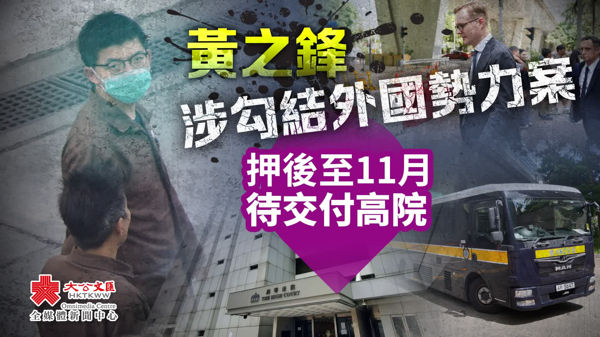 (大公文匯全媒體 記者 梁譯尹)現正就「35+顛覆政權案」服刑的前「香港眾志」秘書長黃之鋒,早前被控一項「串謀勾結外國或者境外勢力危害國家安全」罪,今日(5日)於西九龍裁判法院作交付高等法院審訊程序。