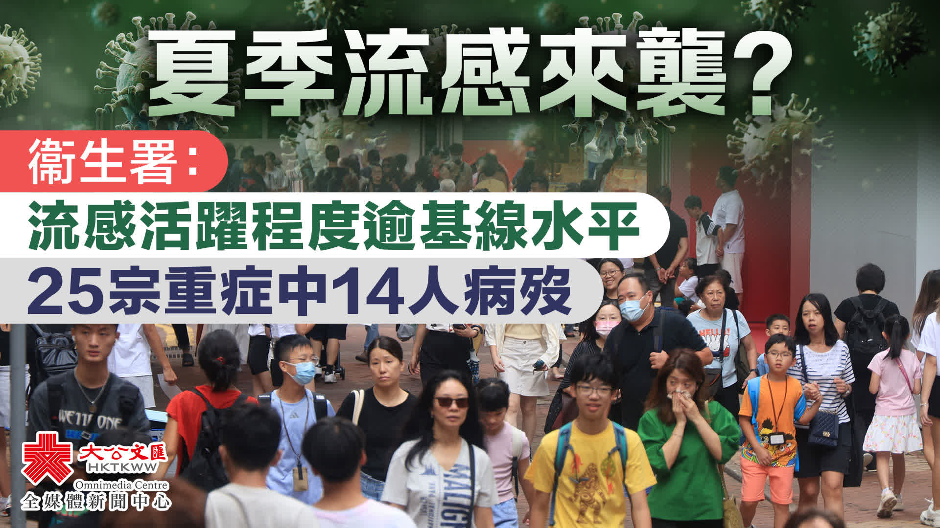 大公文匯全媒體報道,衞生署衞生防護中心最新一期《2019冠狀病毒病及流感速遞》顯示,本港流感活躍程度進一步上升,並輕微超越基線水平。中心指,會審慎監察流感短期內的趨勢,判斷本地是否進入夏季流感季節。