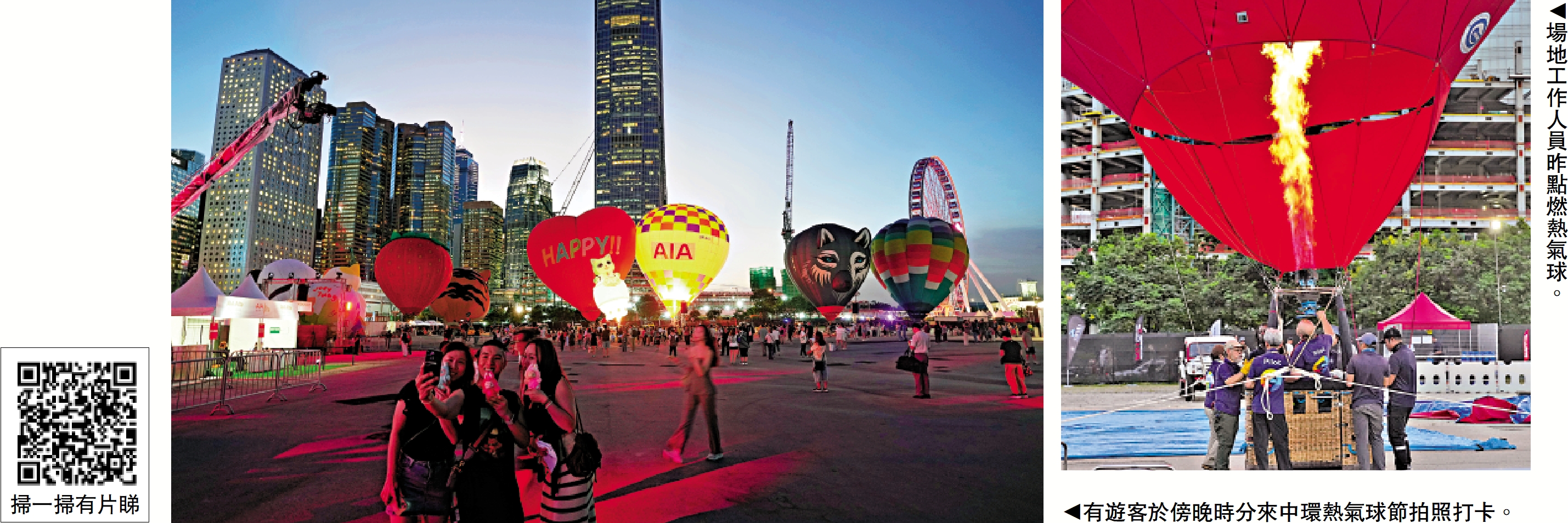 直至昨日傍晚6時,工作人員才為熱氣球再度充氣及點火展示,十多分鐘後,陸續有9個大型的熱球升空,作靜態升空展示,吸引近600名市民入場觀看打卡。