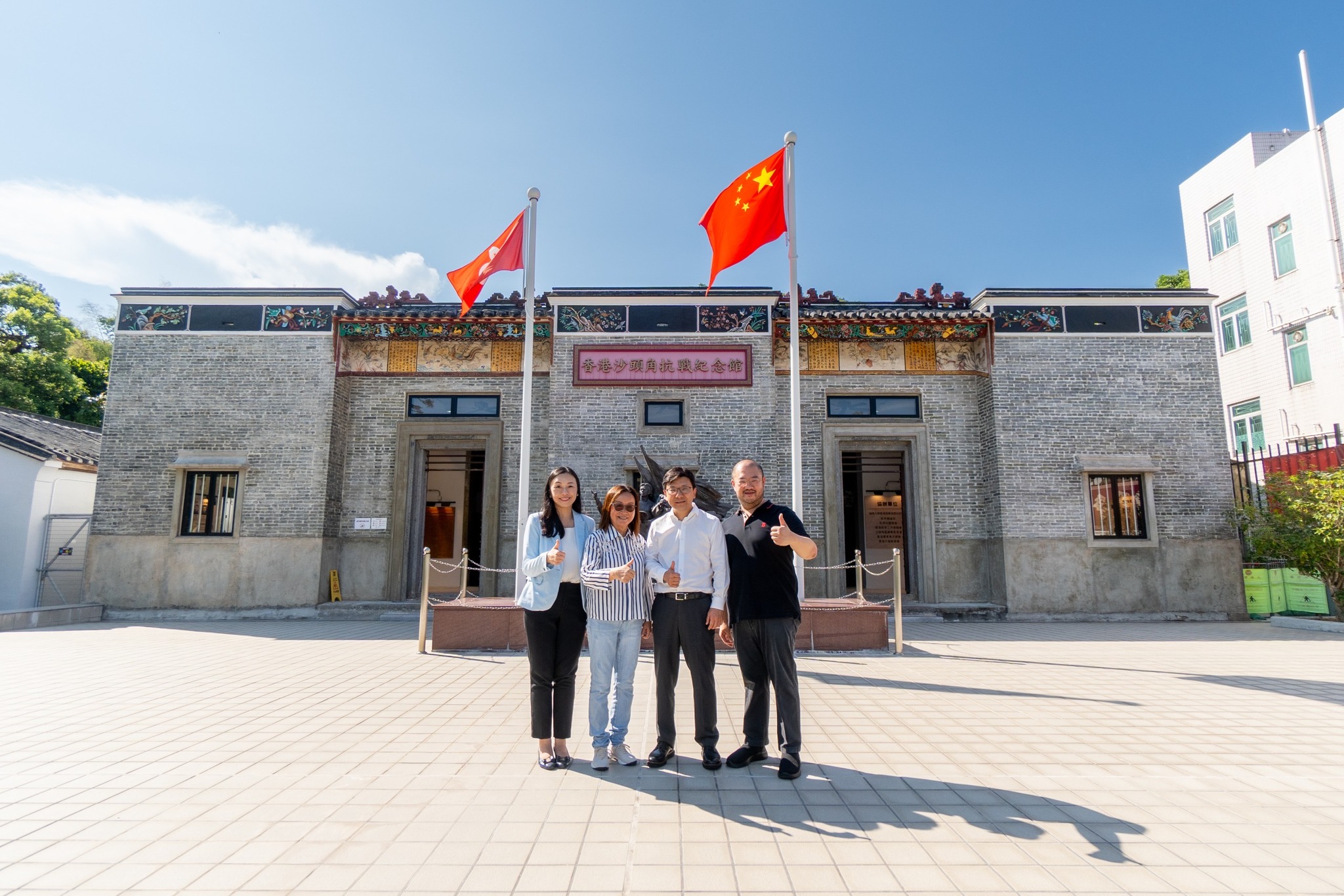 孫玉菡說,當日還和同事到訪了附近位於沙頭角石涌凹的「羅家大屋」,「羅家大屋」現改建為香港沙頭角抗戰紀念館,這座由巴拿馬華僑羅奕輝於1930年興建的大屋,在日佔時期成為東江縱隊港九獨立大隊的活動基地及交通站,在抗日活動中舉足輕重。令人感動的是,羅家共有11位成員毅然投身中國共產黨領導的抗日游擊隊,是香港舉家抗日的傑出代表。這座近5000平方呎的建築於2010年獲評香港三級歷史建築,並在各方努力下,於2022年9月改建為香港首個長期展示港九大隊歷史的愛國主義教育基地——香港沙頭角抗戰紀念館,至今已接待近10萬人次參觀。