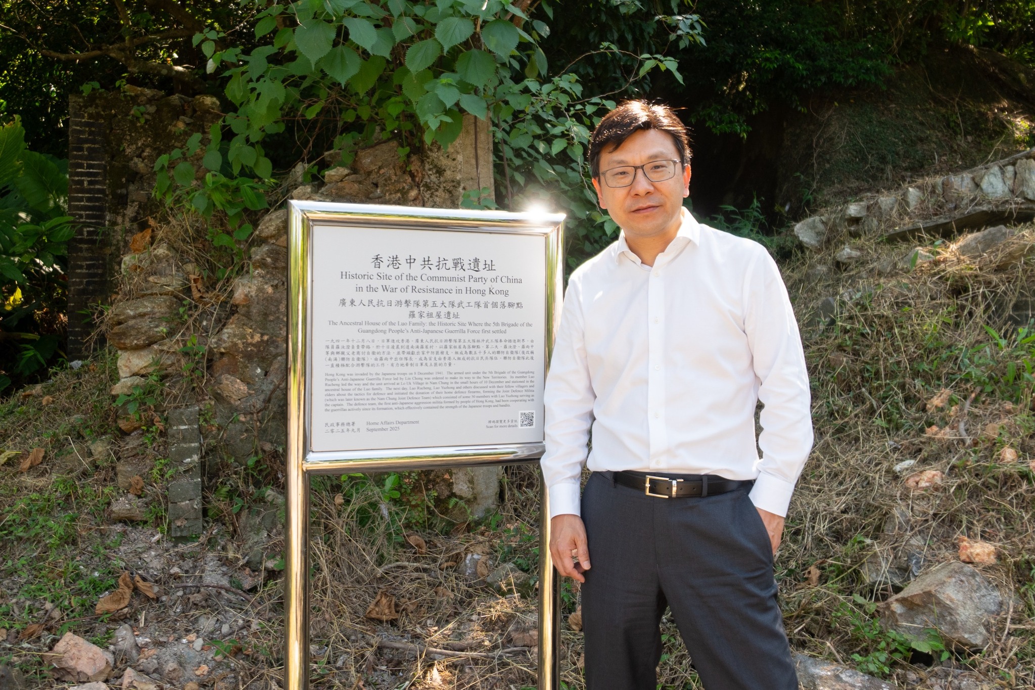 大公文匯全媒體報道,紀念中國人民抗日戰爭暨世界反法西斯戰爭勝利80周年大會,9月3日在北京天安門廣場隆重舉行。在天安門城樓上,有6位觀禮的抗戰老戰士,其中一位便是羅氏家族成員、94歲的華南游擊隊香港老戰士羅競輝。勞工及福利局局長孫玉菡昨日(5日)與勞福局政治助理傅曉琳到訪了這位抗戰老兵的故鄉,親身認識抗戰歷史。一行人先到了位處新界北區沙頭角南涌的羅屋村,參觀了具有重要歷史價值的「羅家祖屋」,並與羅家的後人許楨傾談,深入認識這段抗戰歷史。