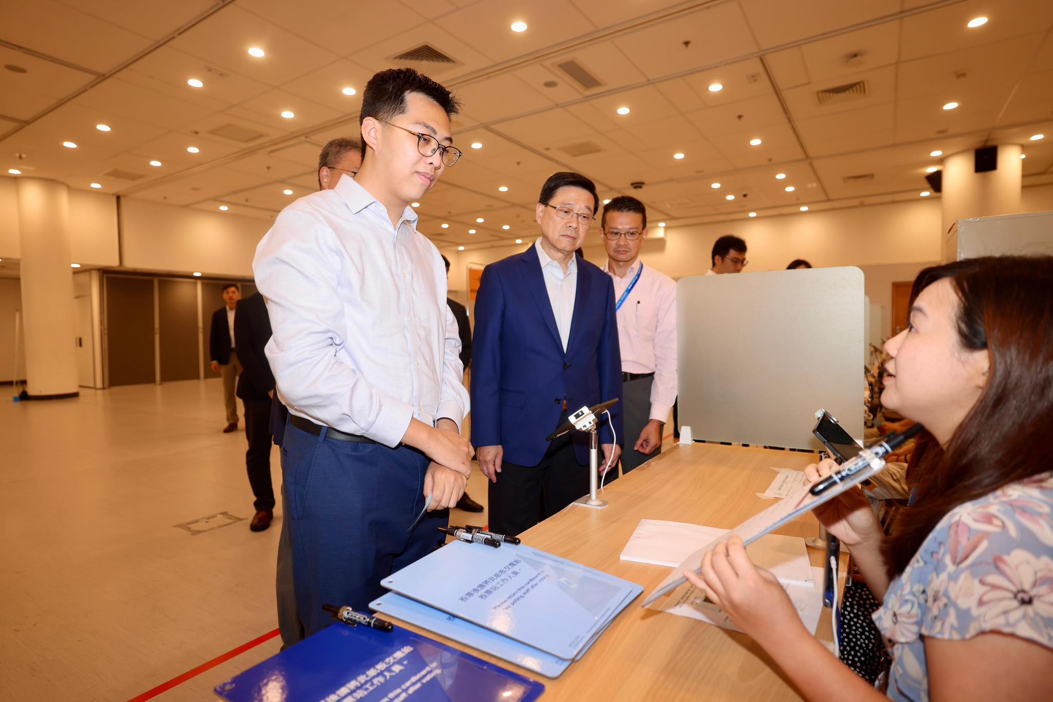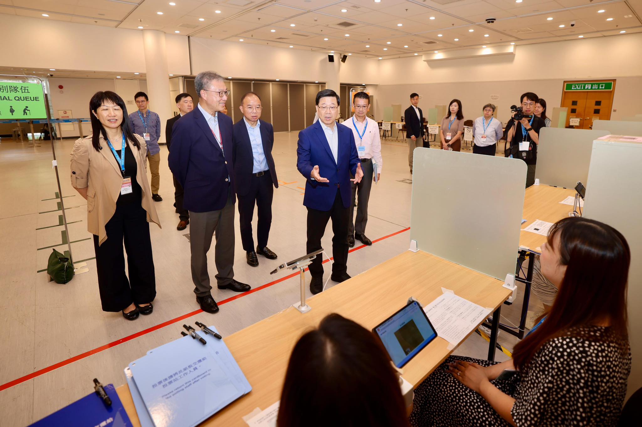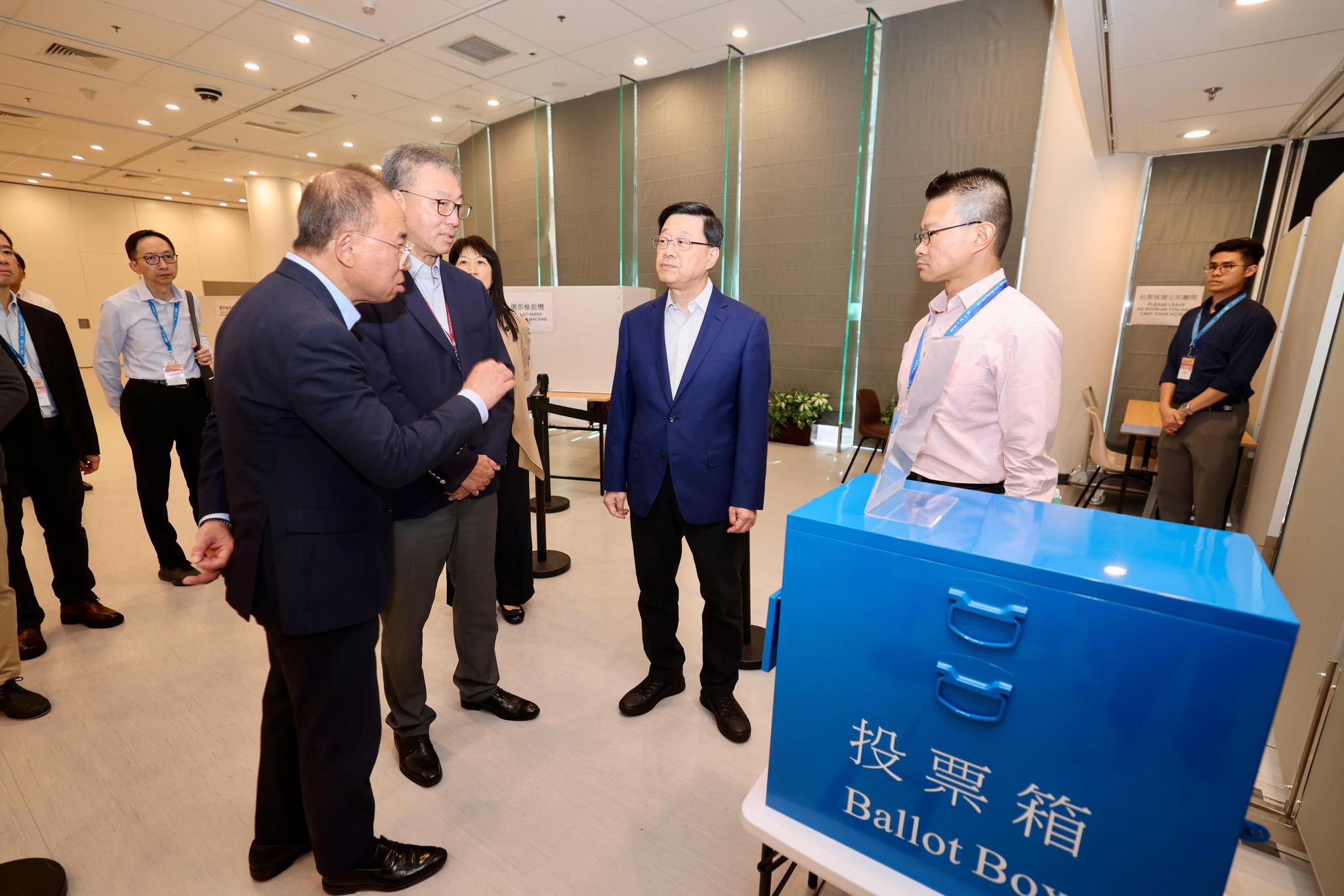 李家超表示,票站工作人員向他們介紹了明日的投票流程和人力配置,同事在各方面均已準備就緒,將全力確保明日各項投票程序均符合相關法例和指引,讓投票在公開、公平及誠實的情況下,安全有序及高效地進行。