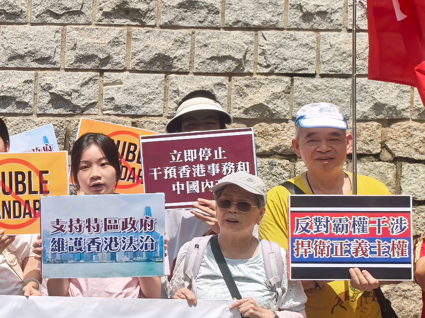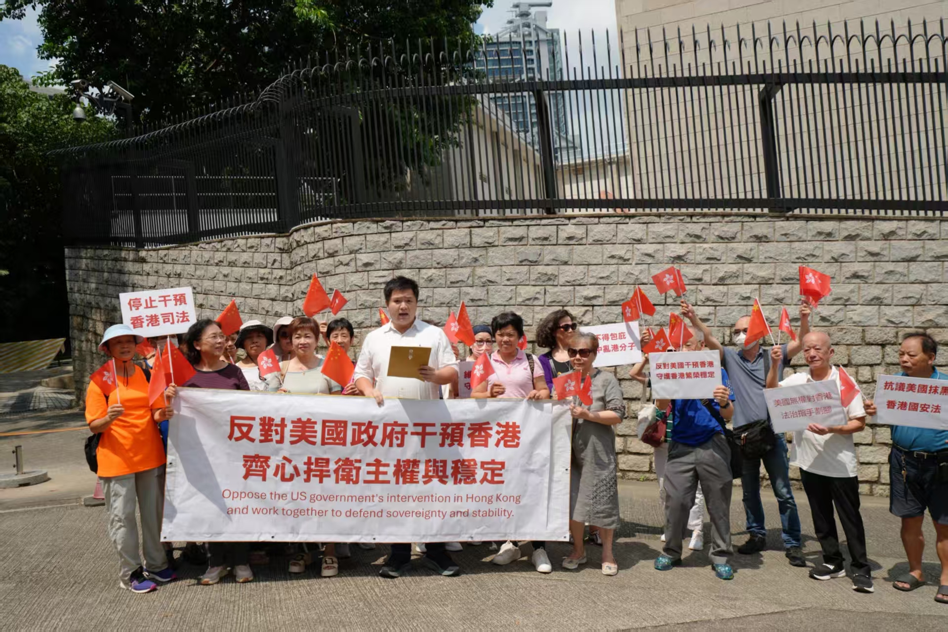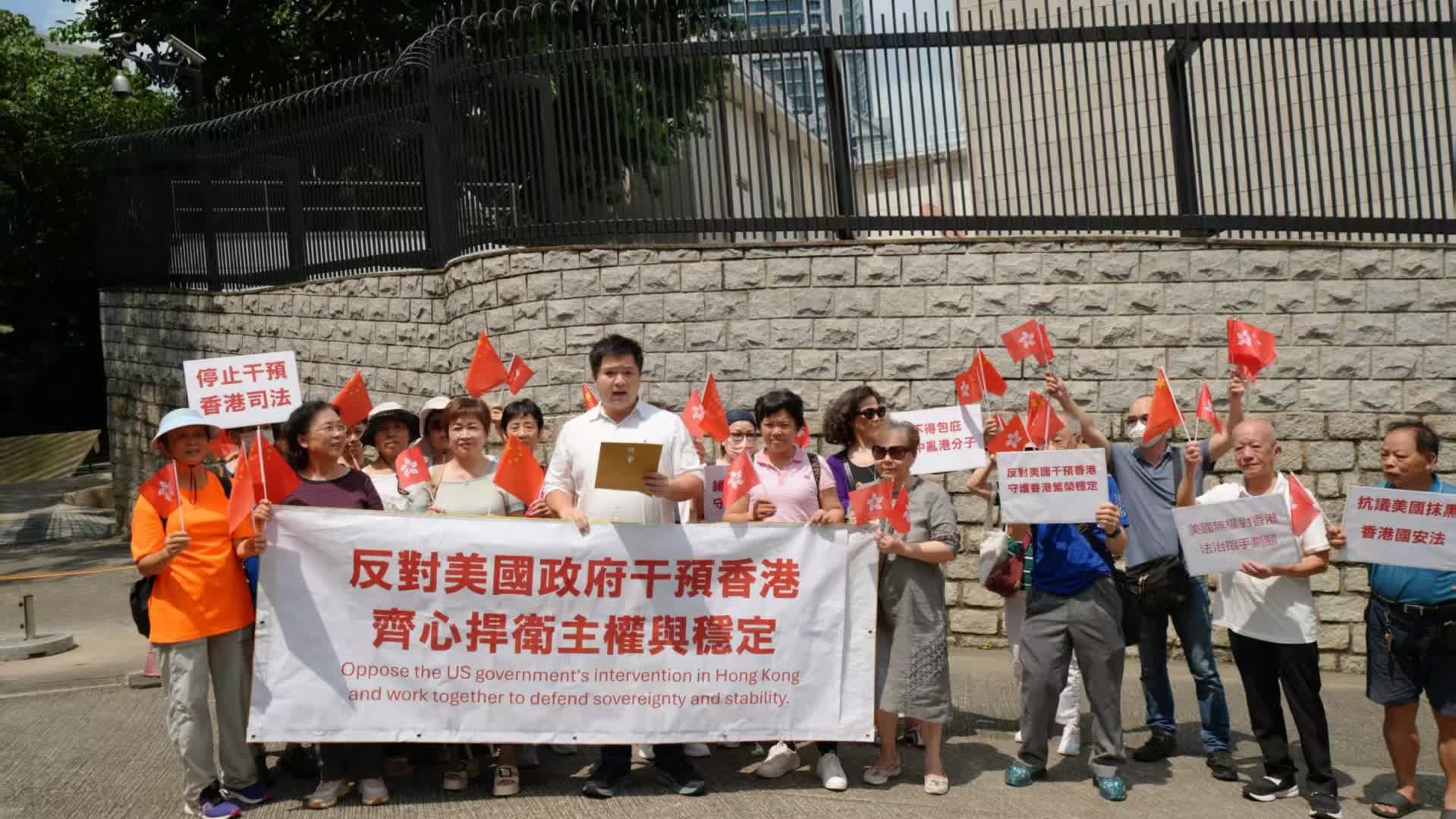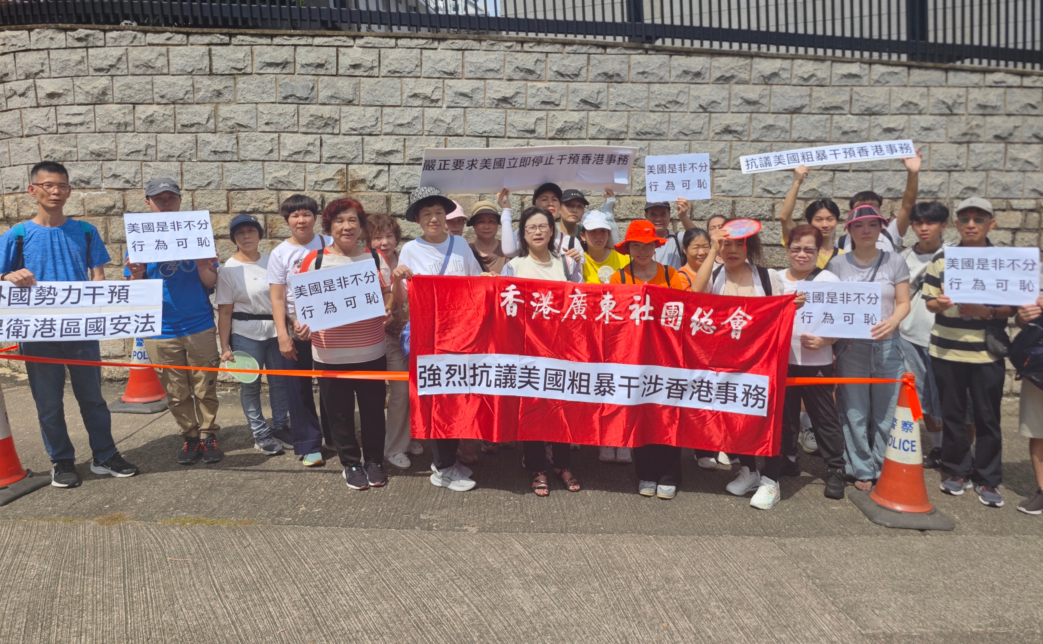 有市民團體強烈抗議美國近期無端詆毀香港警方依法通緝反中亂港分子,和發布所謂「人權報告」蓄意抹黑中國和香港特區的人權法治,要求美國立即停止干預香港事務和中國內政,堅決支持特區政府維護香港法治。