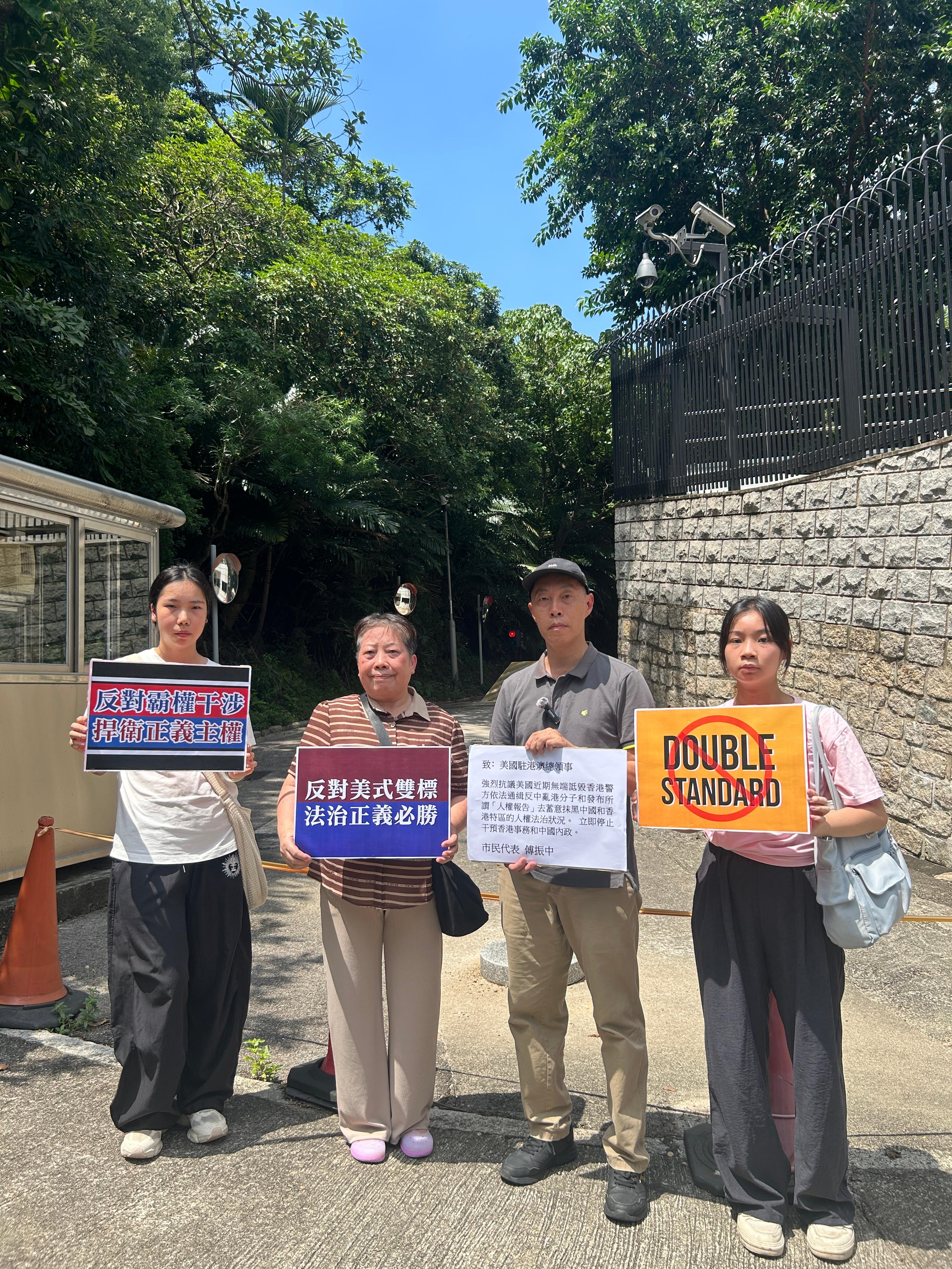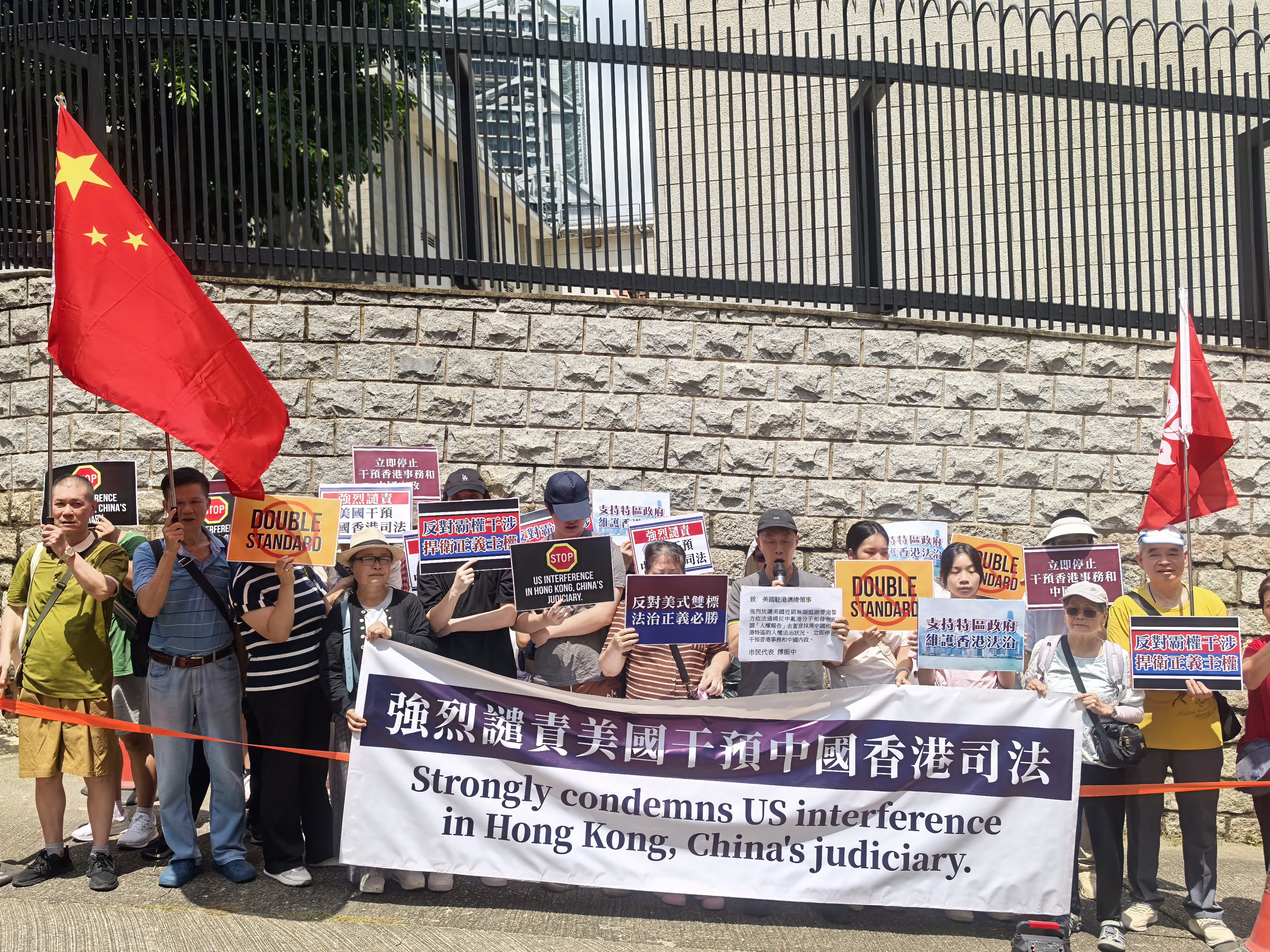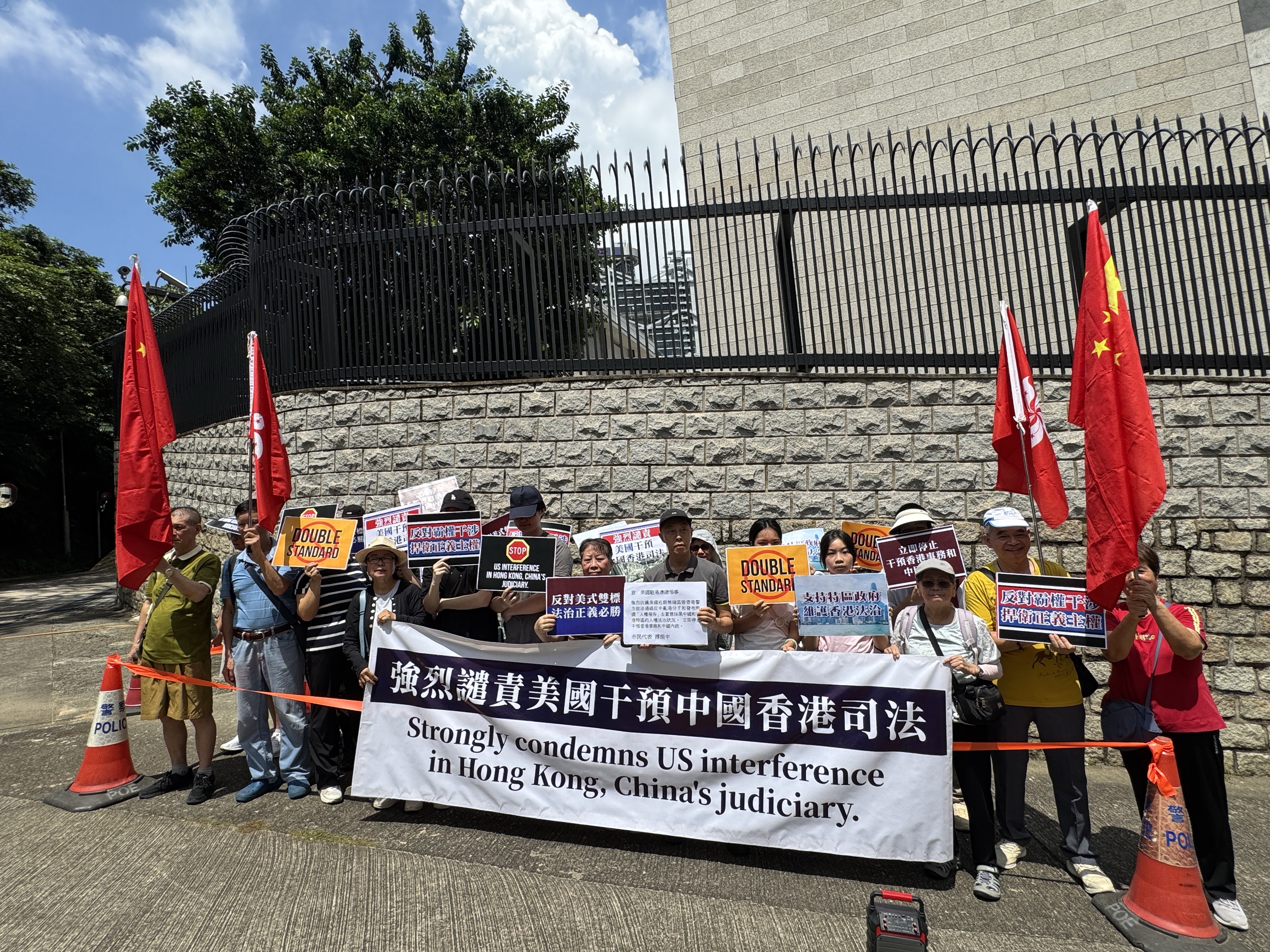 大公文匯全媒體報道,香港多個市民團體今日(6日)到美國駐港澳總領館外抗議,強烈譴責美國干預香港司法,痛斥「美式雙標」。