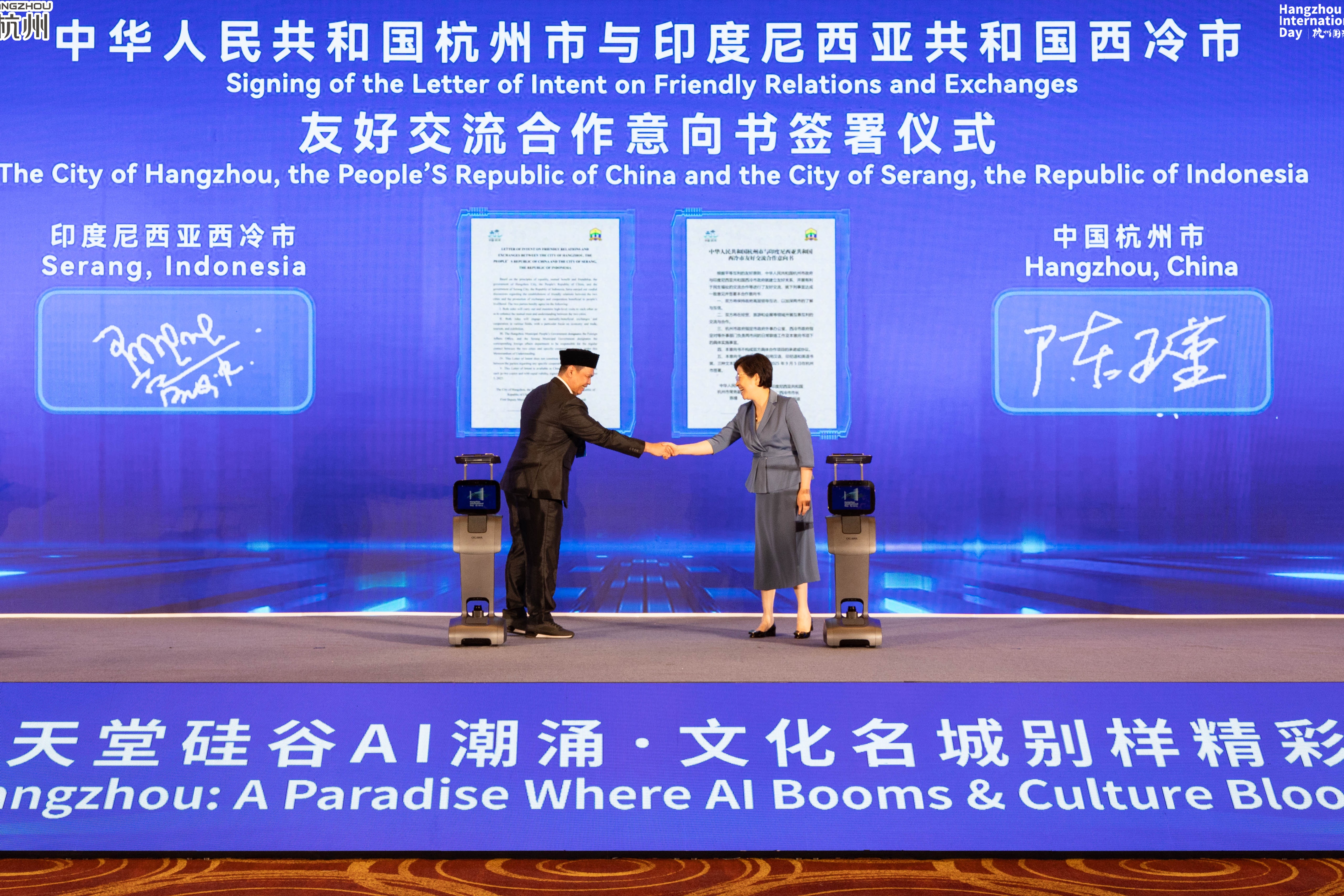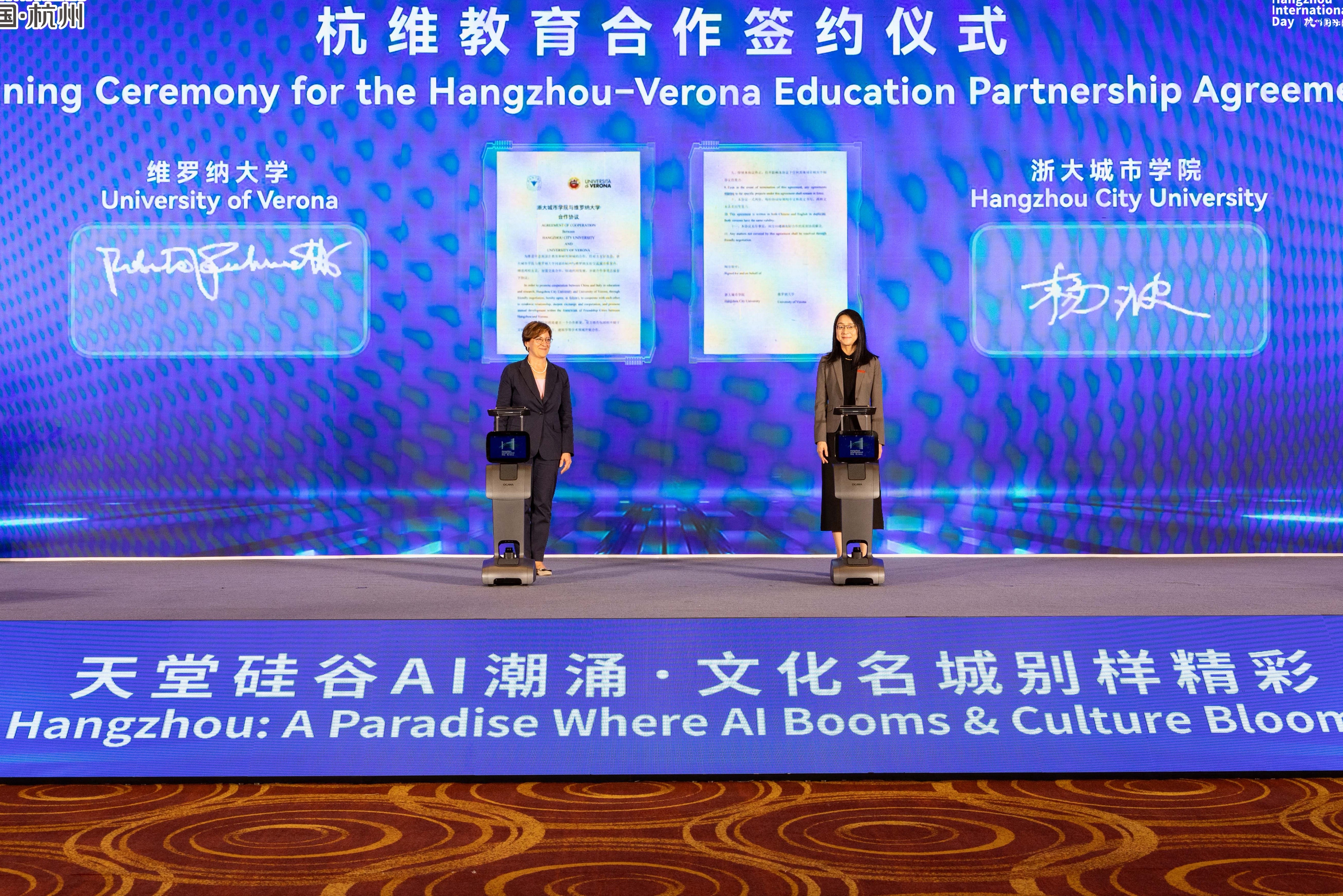 開幕式上,杭州・維羅納交流館正式揭牌,標誌着兩座城市文化交流邁入新階段;杭州市與印度尼西亞西冷市簽署友好交流合作意向書、浙大城市學院與維羅納大學簽署交流合作協議,為城市間經貿、教育領域合作奠定基礎。